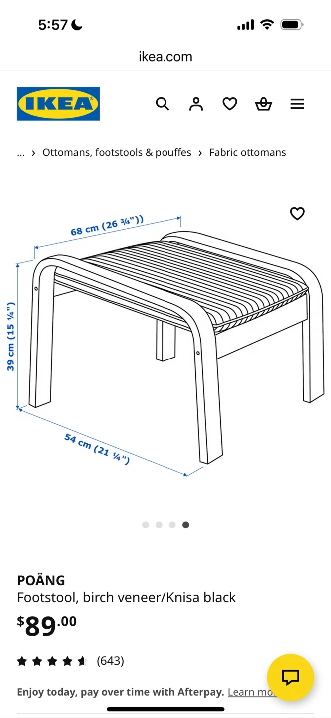 IKEA POÄNG footstool, birch veneer/Knisa black. Unboxed and assembled but barely used. No pets in the home. See images for official dimensions. Retails for $89.
