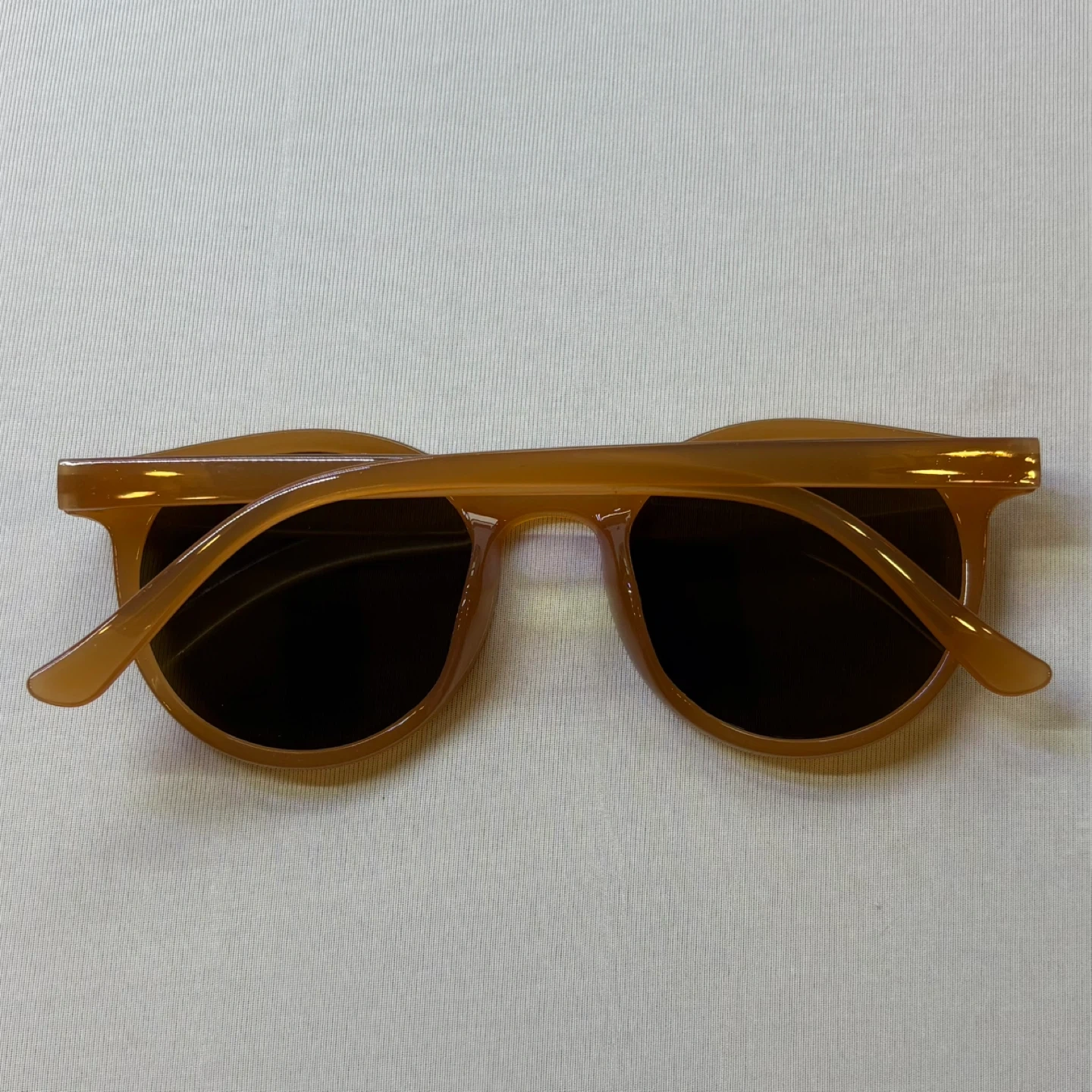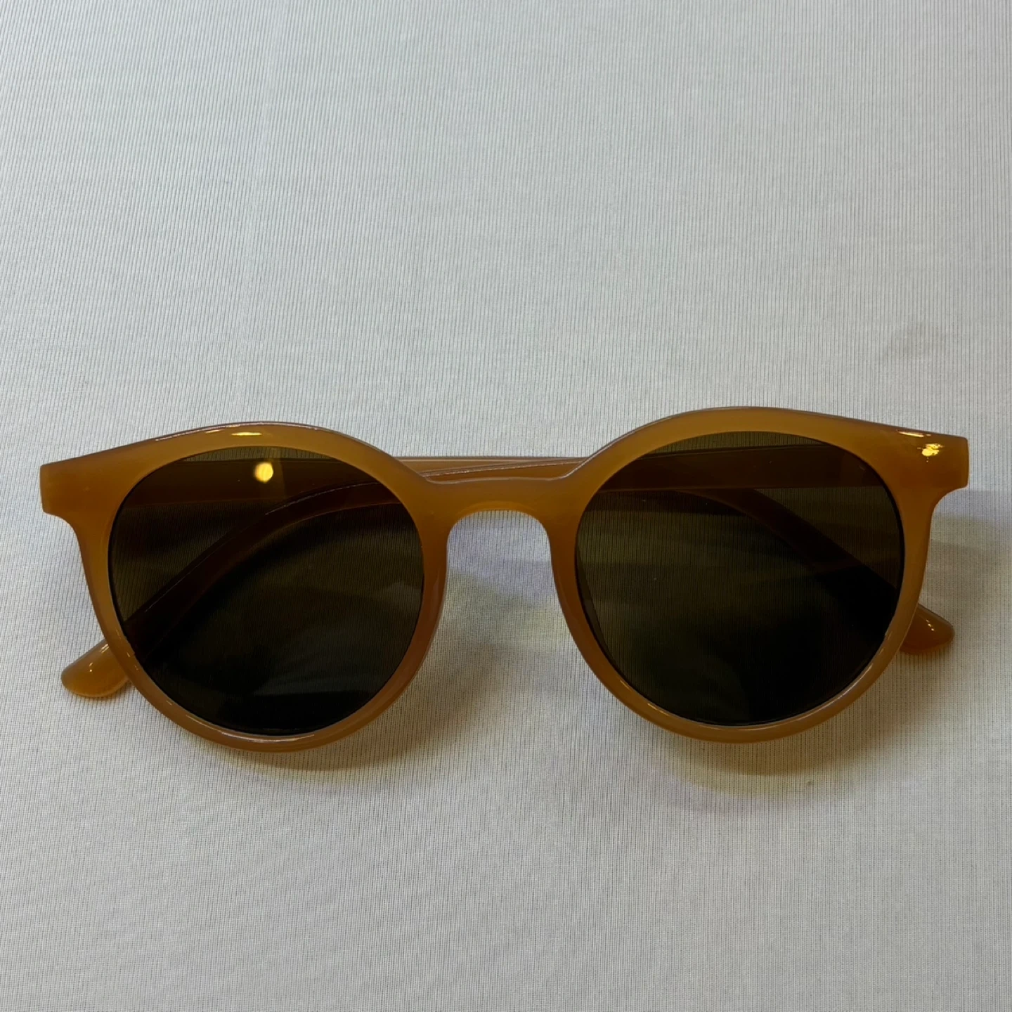 Stylish round sunglasses featuring lightweight brown frames and dark tinted lenses. These glasses offer a vintage-inspired look with a modern minimalist feel, suitable for both casual wear and outdoor activities. The neutral frame tone flatters most skin tones and complements any outfit.
