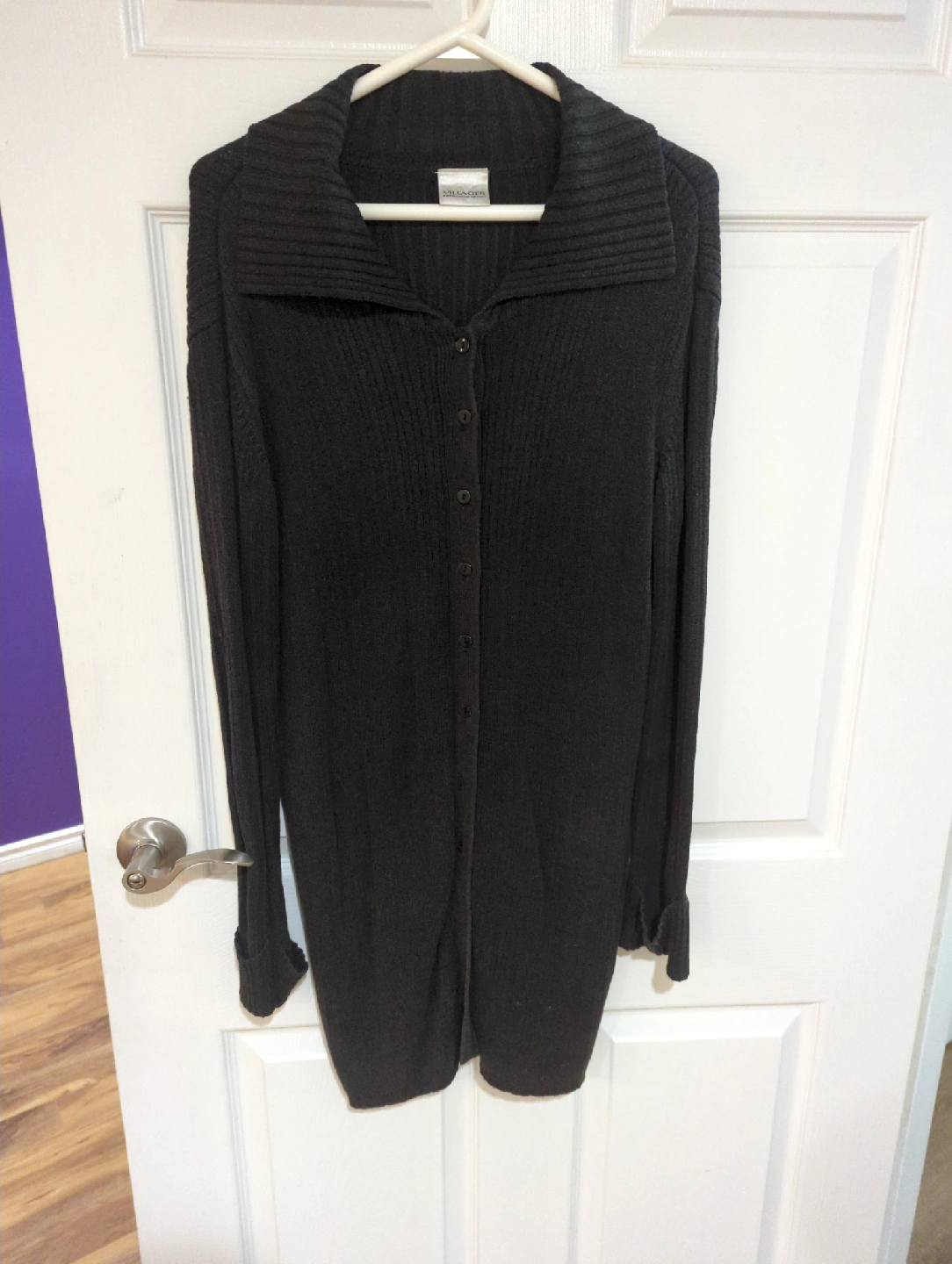 83Selling a Villager black knit cardigan. It's in great condition and perfect for layering. The material is soft and comfortable, making it ideal for everyday wear. It has a classic design that can be dressed up or down. A versatile addition to any wardrobe!