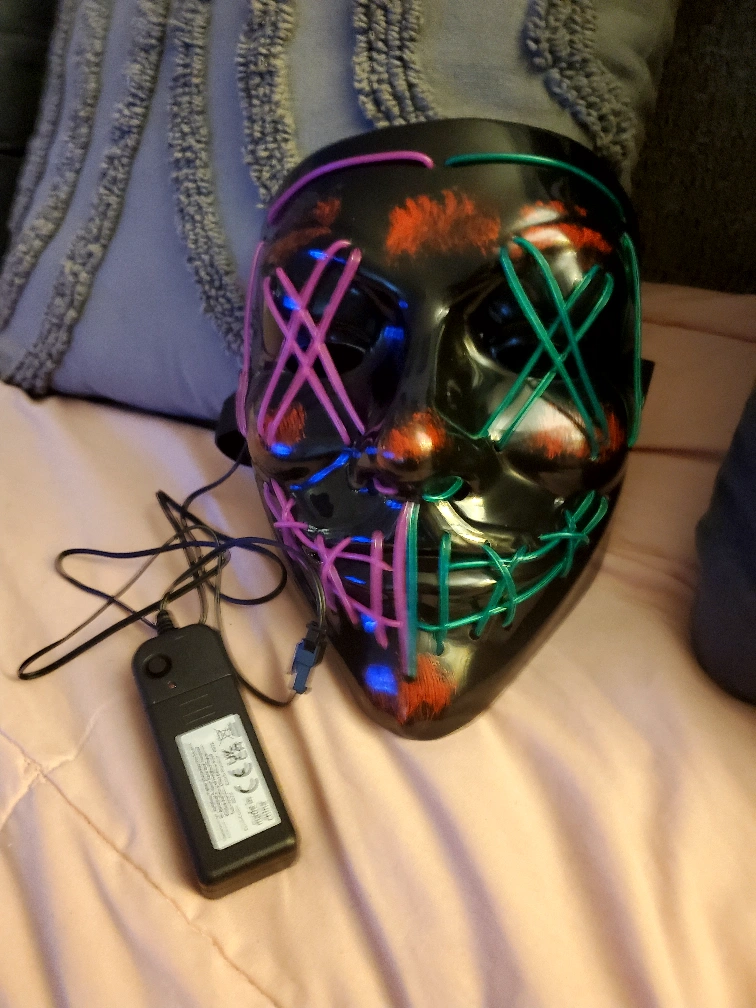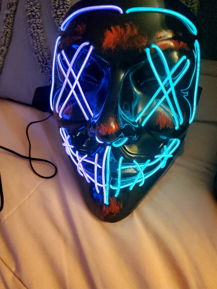 Selling an LED purge mask! It has multiple colours for the LED lights. Perfect for Halloween or a party!