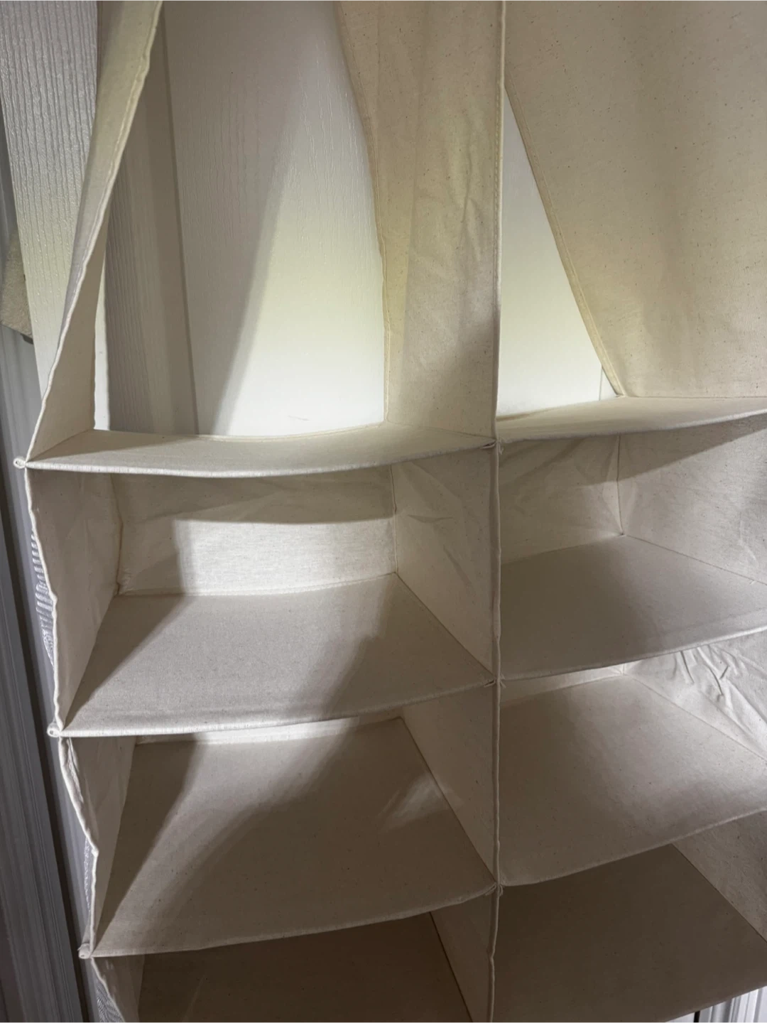 555This is a hanging closet organizer in beige. It has multiple shelves for storage. Perfect for keeping your closet tidy and organized! New $10 Yonge and finch
