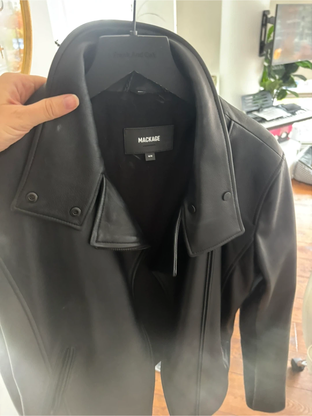 41Mackage black leather jacket in size S/M. It's in great condition and ready for a new home! A few minor marks - didn’t wear it much originally priced at $1000