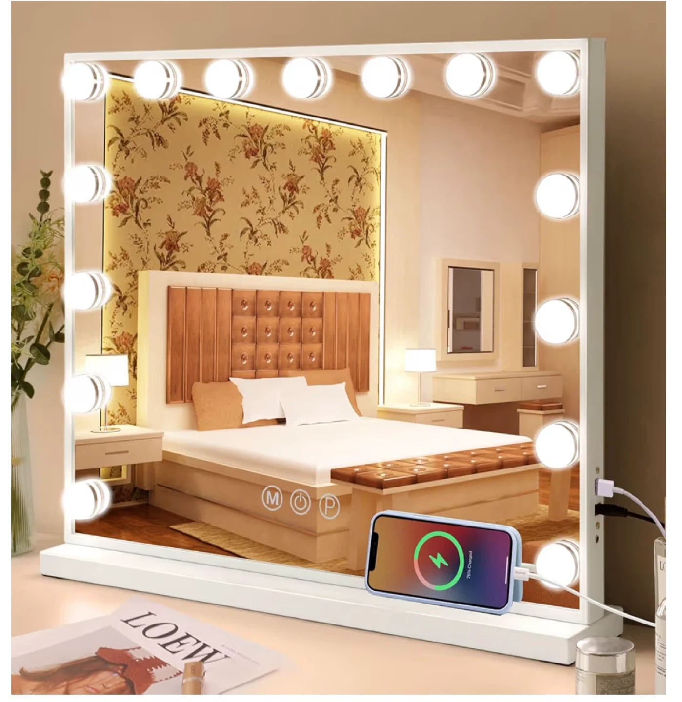 Selling a Fenair Hollywood makeup mirror with lights! It has 18 bulbs and comes with a free compact magnifier and user guide. This mirror is perfect for getting ready and adding a touch of Hollywood glam to your space. The box is included