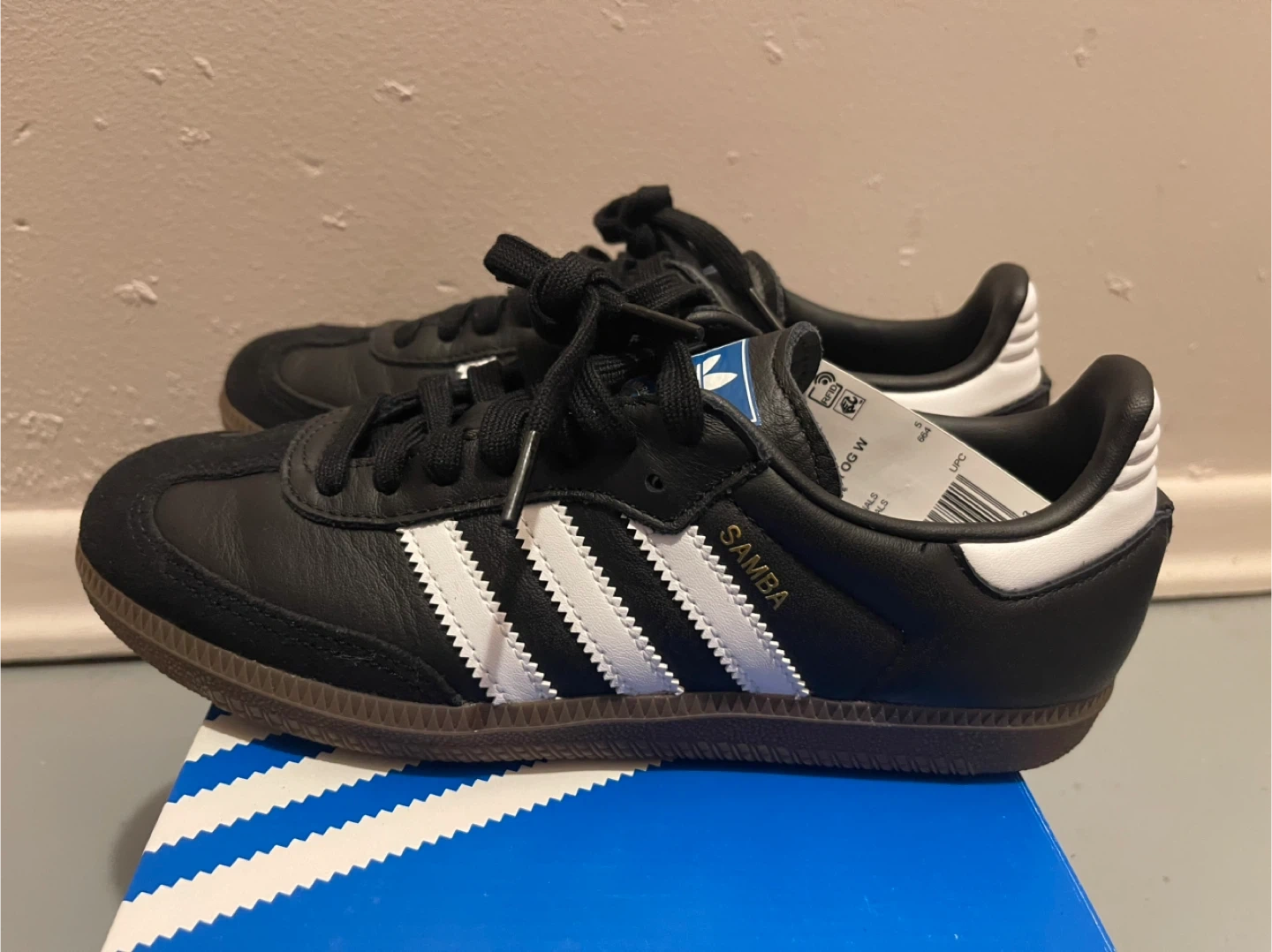 Selling a pair of Adidas Samba OG shoes in black. They come with the original box. These classic sneakers are in great shape and ready for a new home!