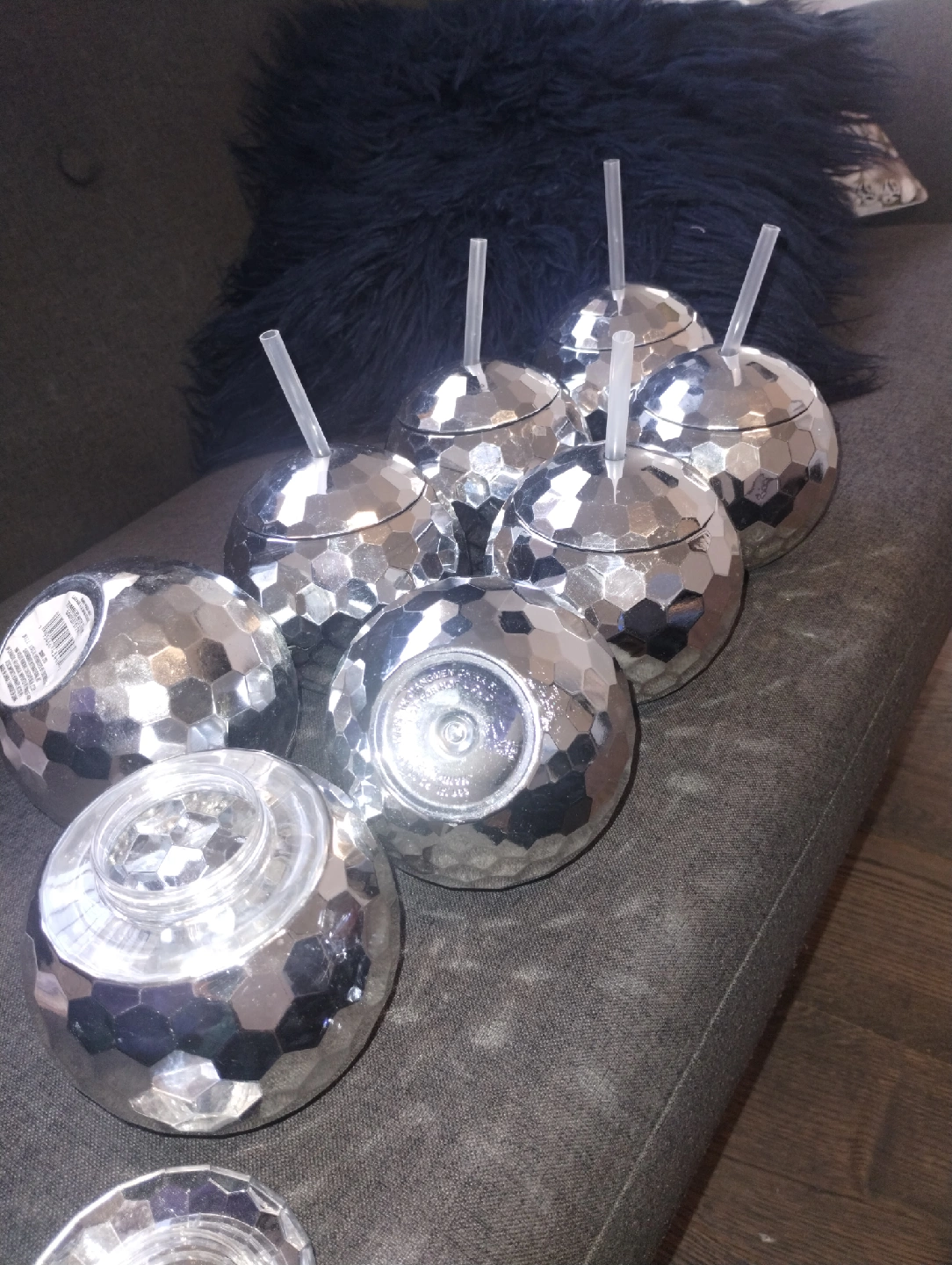 10Selling a set of disco ball tumblers with straws! These are perfect for parties or just adding a bit of fun to your drinkware. Each tumbler is brand new, 8 in total , 5 have straws and 3 don't.