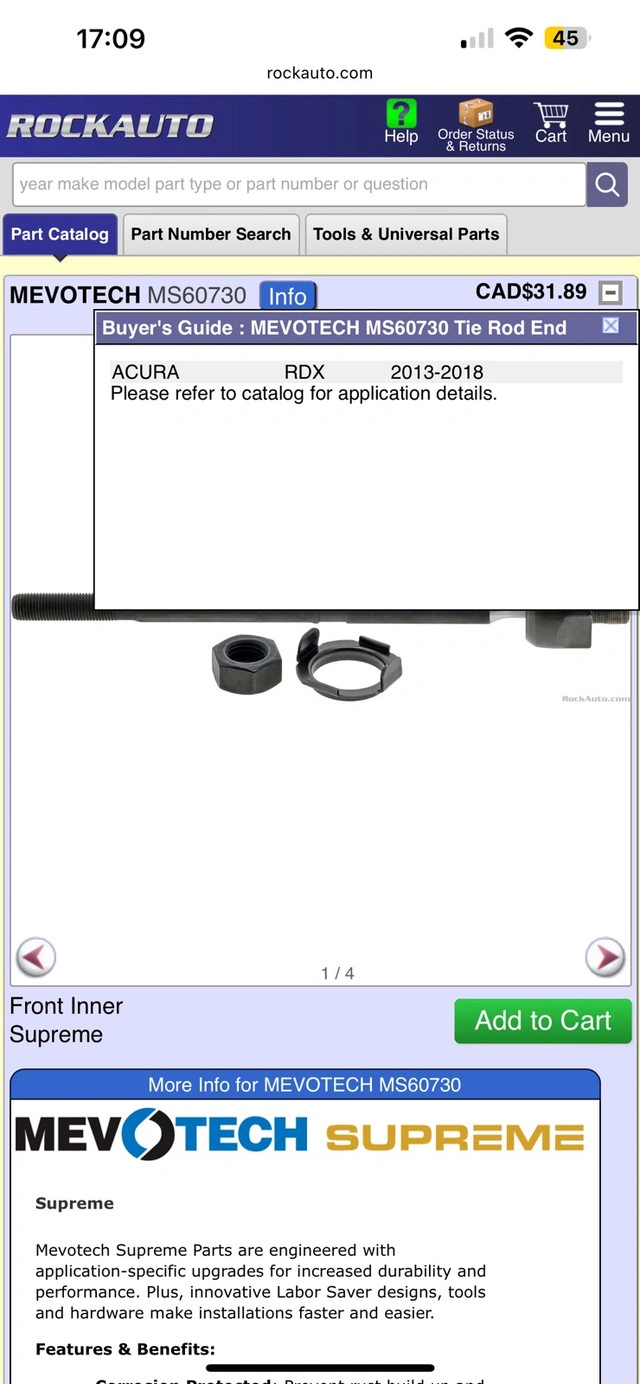 Selling brand new never used Mevotech inner tie rods for 2013-2018 Acura RDX. Never used or installed, new in box. $30 each.