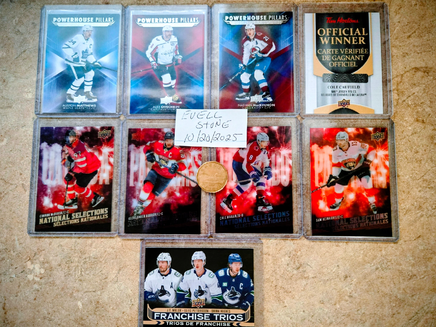 A collection of hockey cards featuring Powerhouse Pillars and National Selections series. Great for any hockey fan or collector!