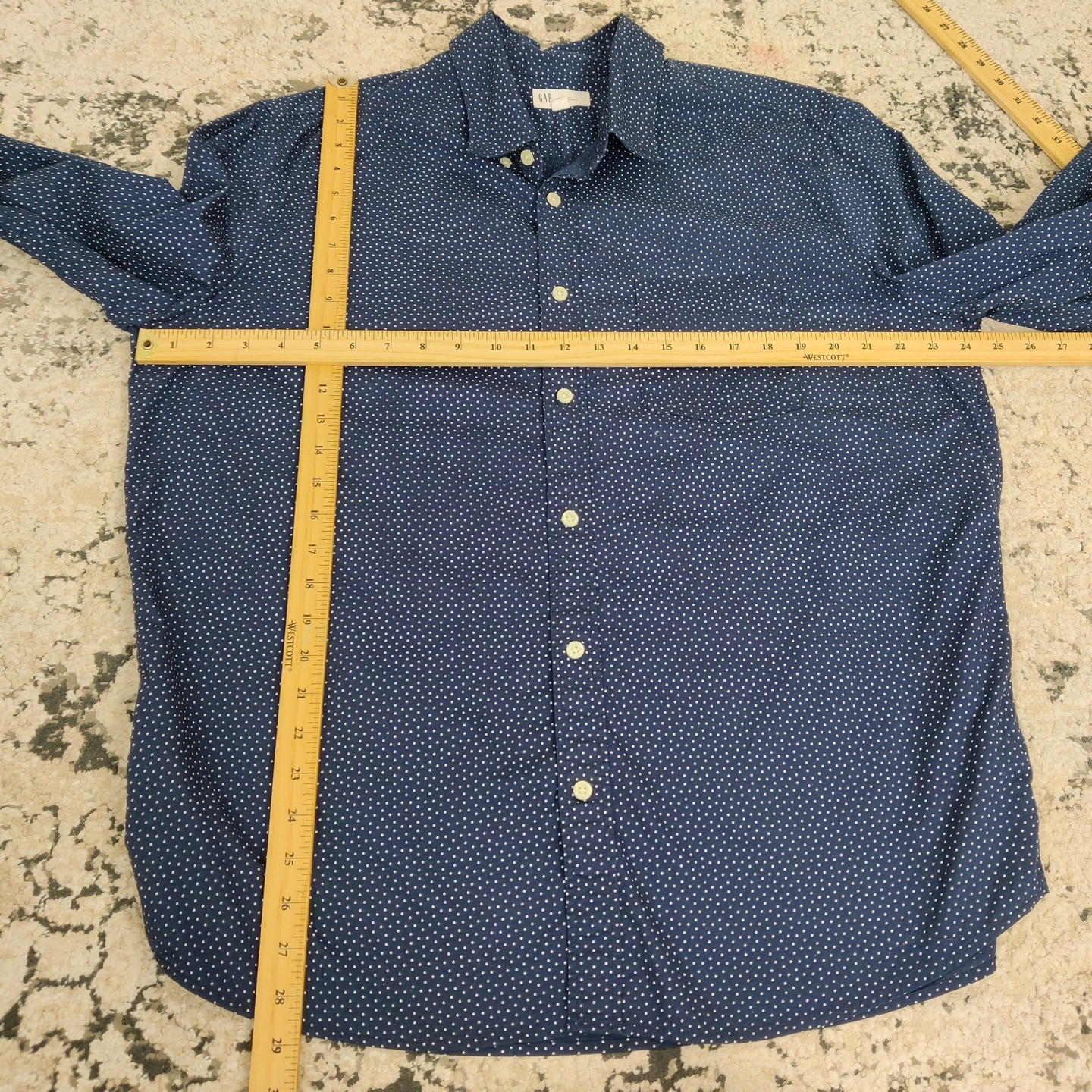 10Men's button down shirt In good used condition Measurements are approximate and taken laying flat Follow me on Instagram @renewifyupcycle for unique upcycled items