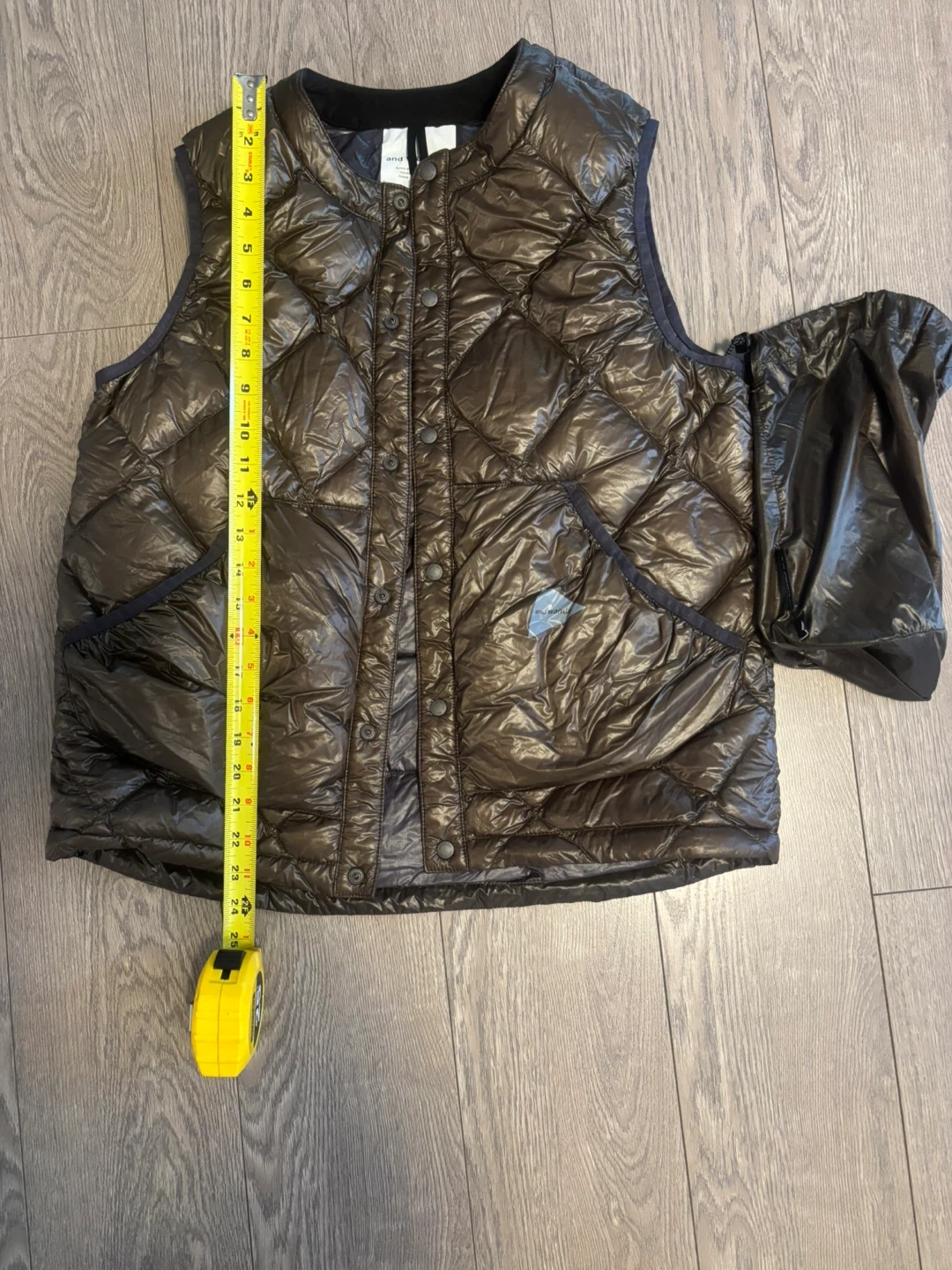 Selling an And Wander quilted down vest in size small. It's made of Pertex nylon and 90% down padding, perfect for layering. The vest is in great condition and comes with a stuff sack for easy storage. Great for cold days!