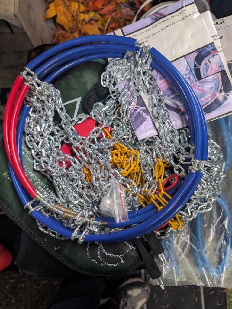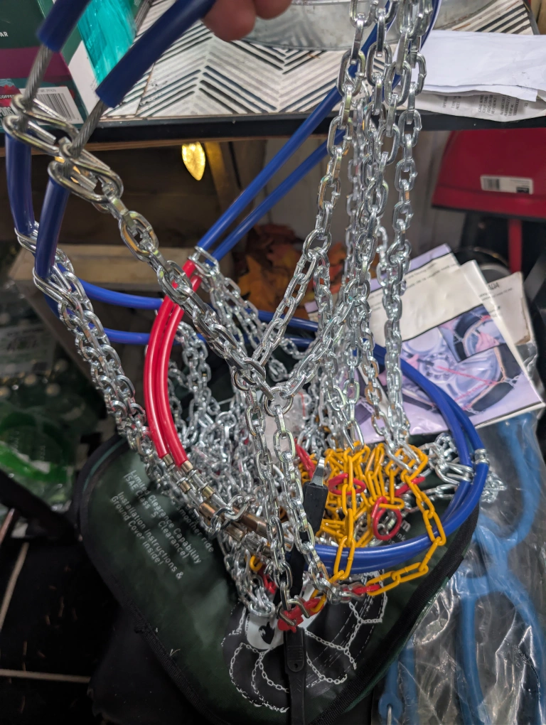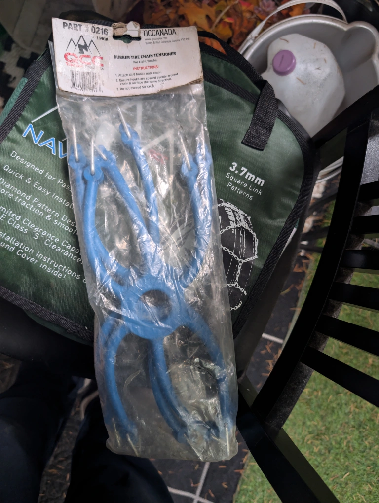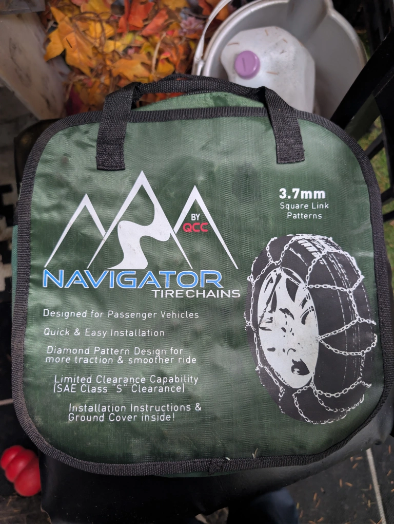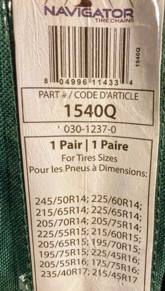 Brand new, never used. Navigator tire chains, diamond pattern design for more traction and smother ride