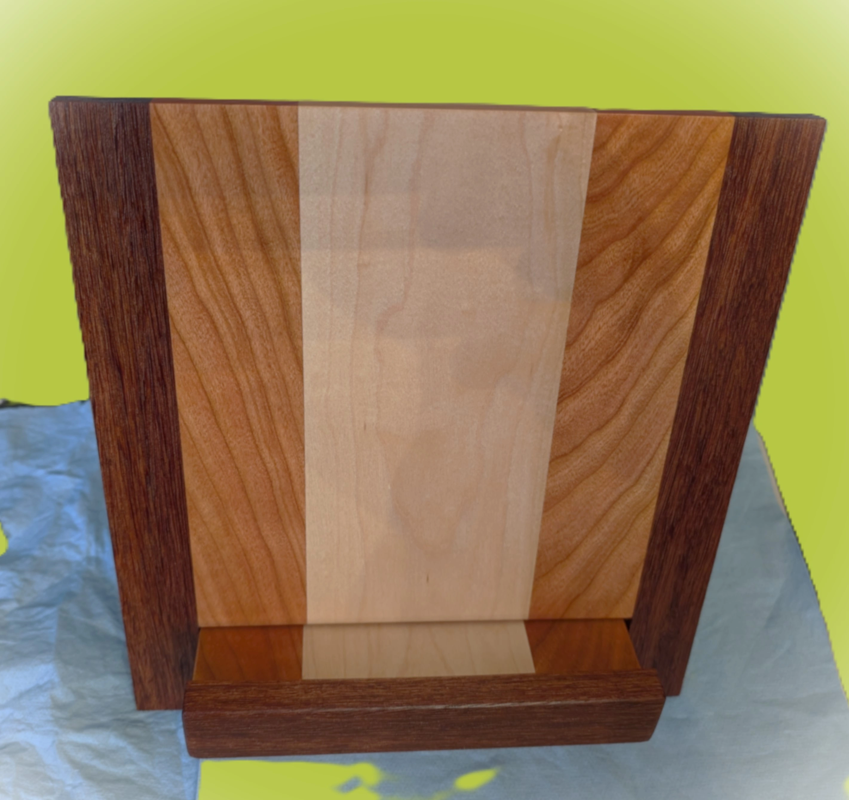 This stand is made from Maple, Cherry, and Sucupira wood, making it truly unique. The cherry and maple represent the Canadian flag while the Sucupira represents the flagpole.