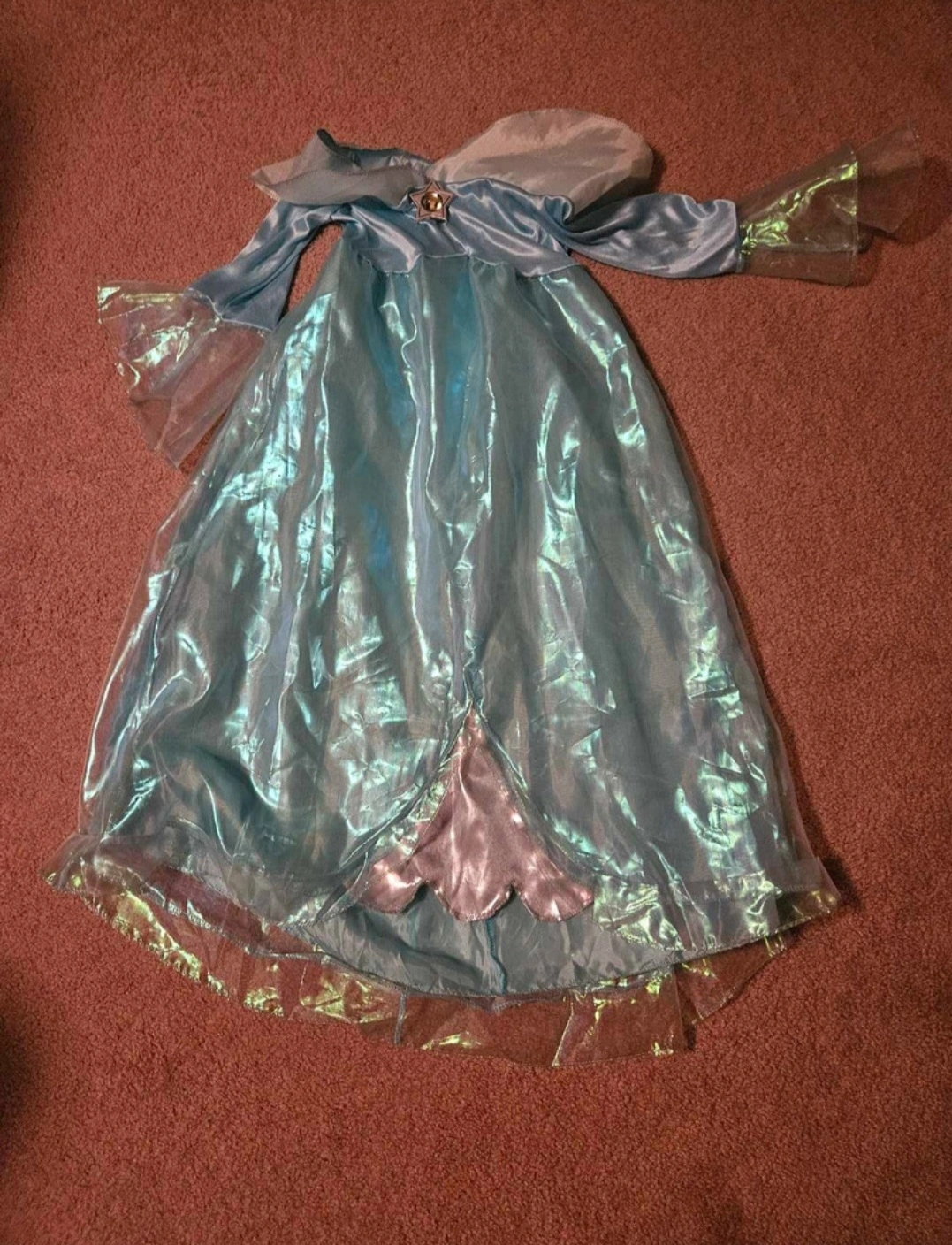 A beautiful princess dress, perfect for dress-up or Halloween! The dress is a light blue colour with some silver accents. It's in great condition and ready for a new princess to wear it!