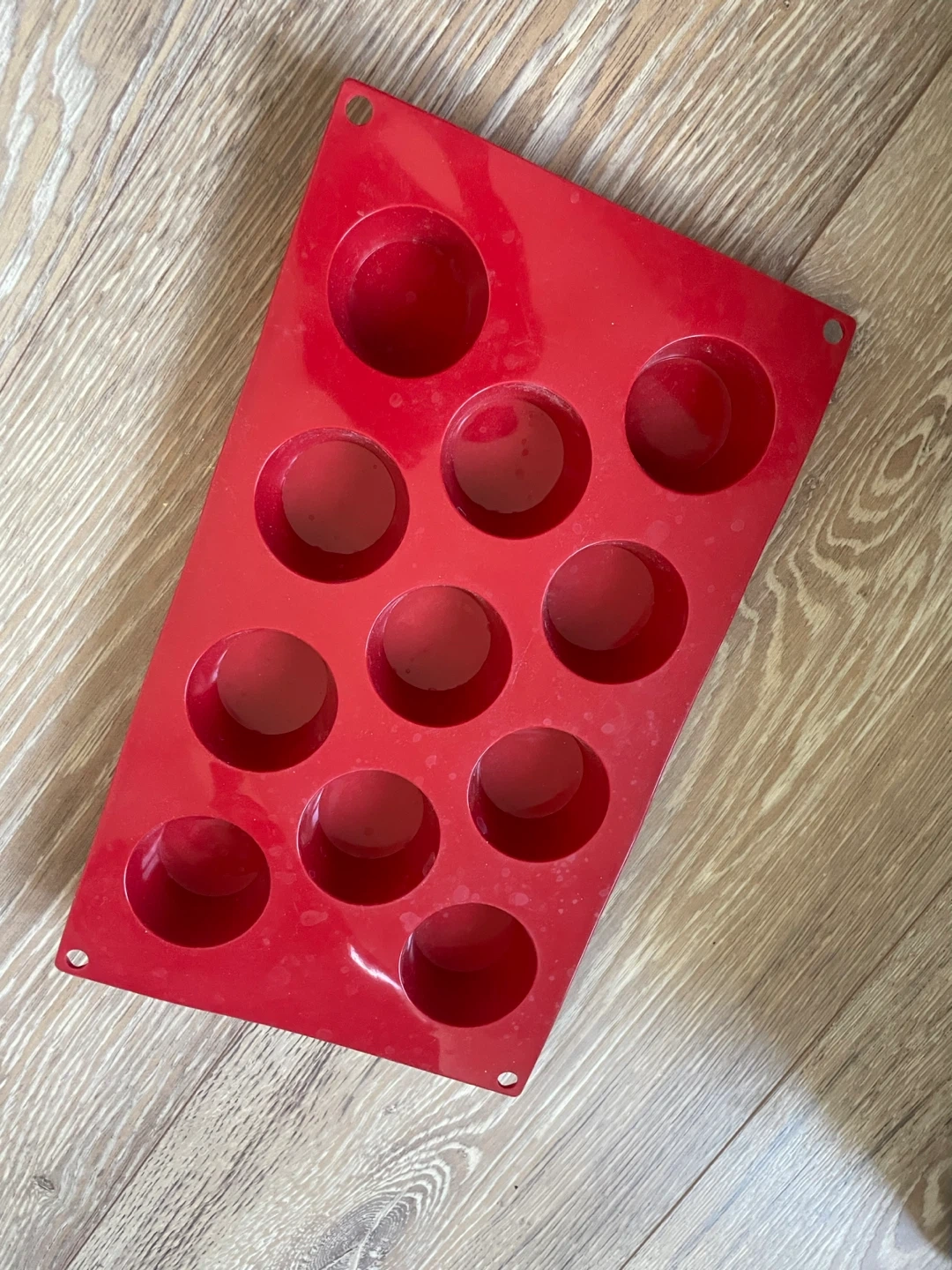 417Selling a red silicone muffin pan! It has 12 cavities, perfect for baking muffins or cupcakes. Great for home baking!