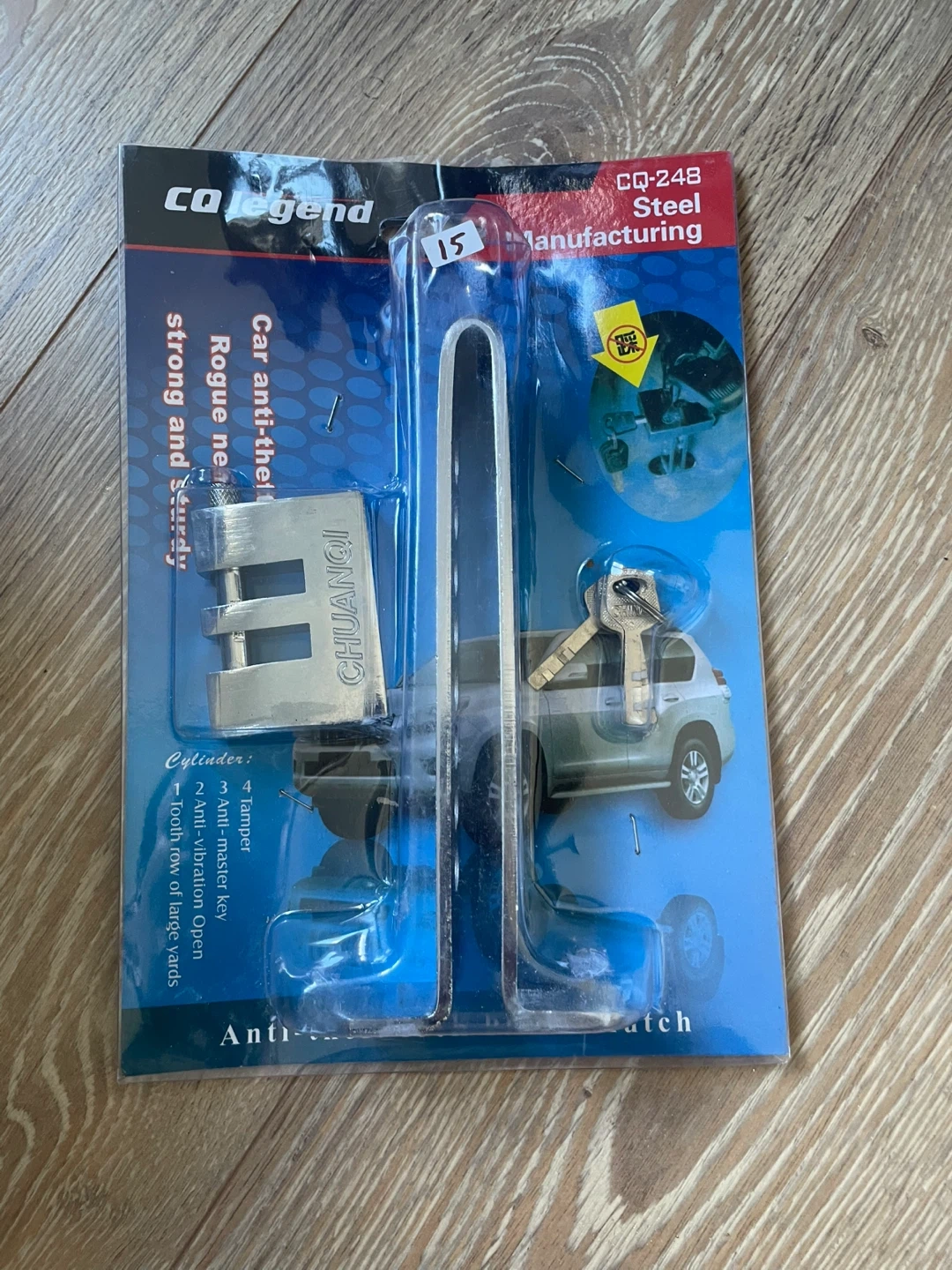 417Selling a CQ Legend car anti-theft lock. It's a CQ-248 steel manufacturing model, designed to be strong and sturdy. It features an anti-master key and anti-vibration open cylinder. Keep your car safe!