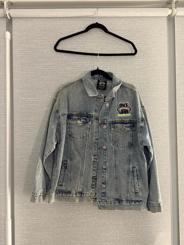Vintage-inspired Space Jam: A New Legacy denim jacket Classic light-wash denim with a slightly oversized fit. Perfect collectible for fans of Space Jam, Looney Tunes, or 90s-style streetwear. Details: • Size: Medium • Colour: Light-Wash Blue Denim • Material: 100% Cotton • Embroidered graphics front + back • Condition: 9.5/10 like new, no fading or damage For Sale By: Owner