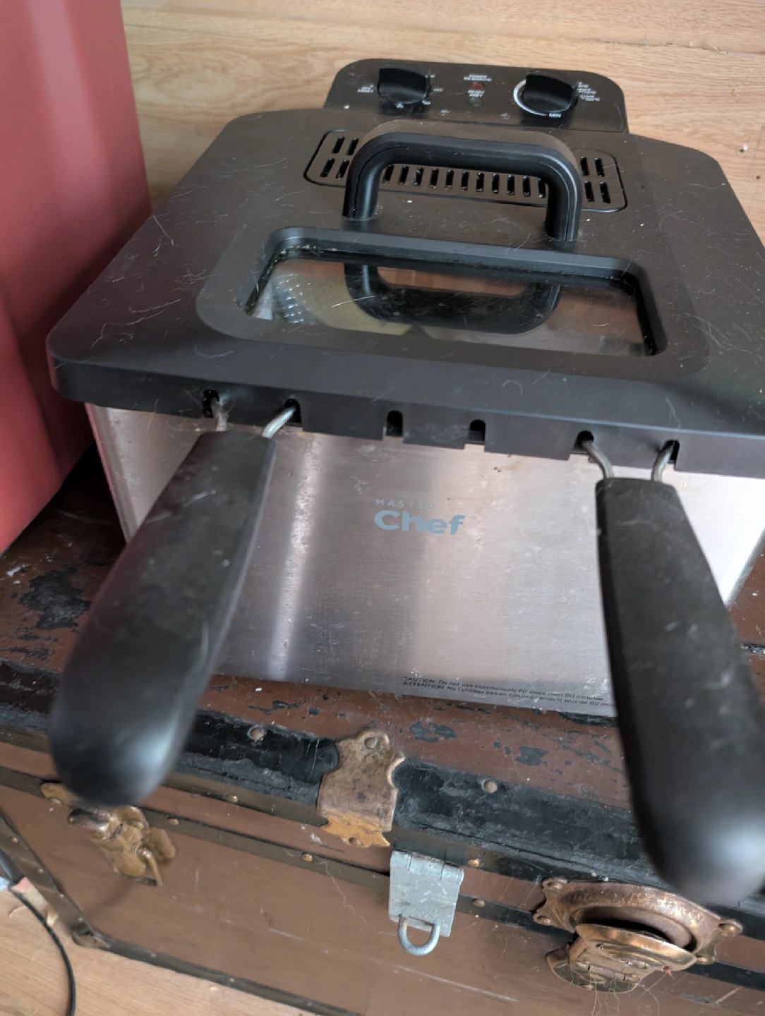 Selling a Master Chef deep fryer. It comes with two frying baskets. Great for making crispy fries or onion rings at home!