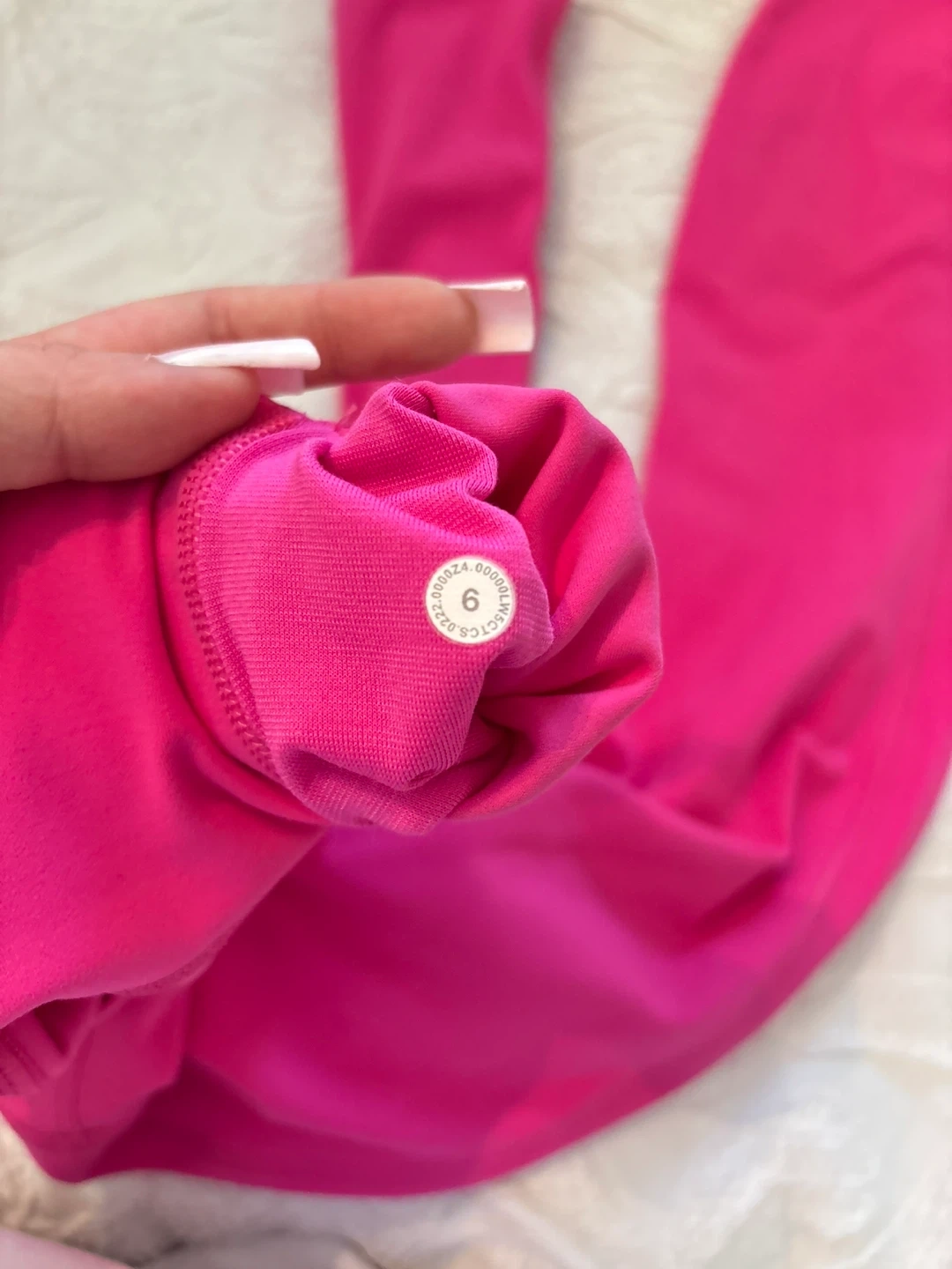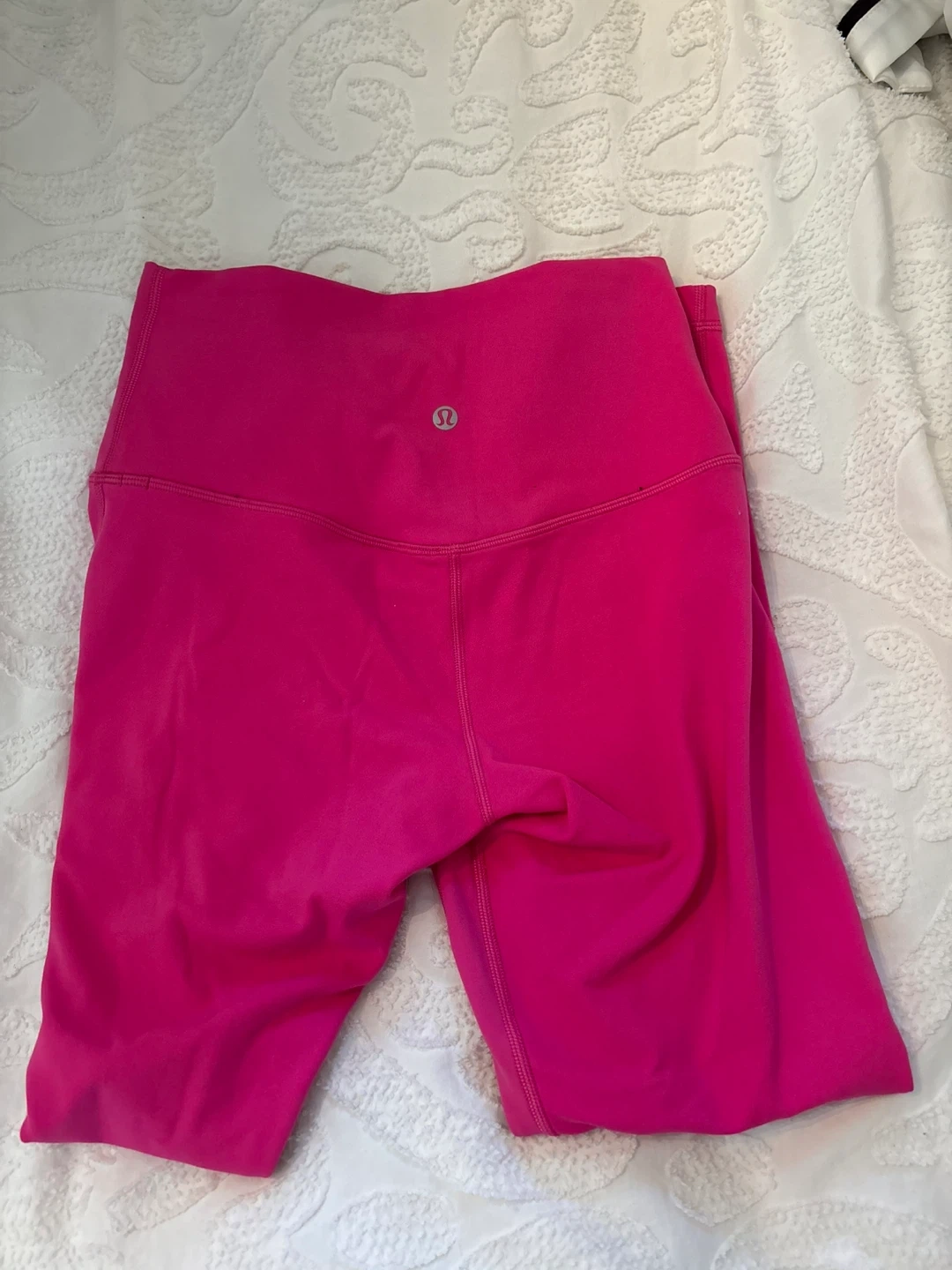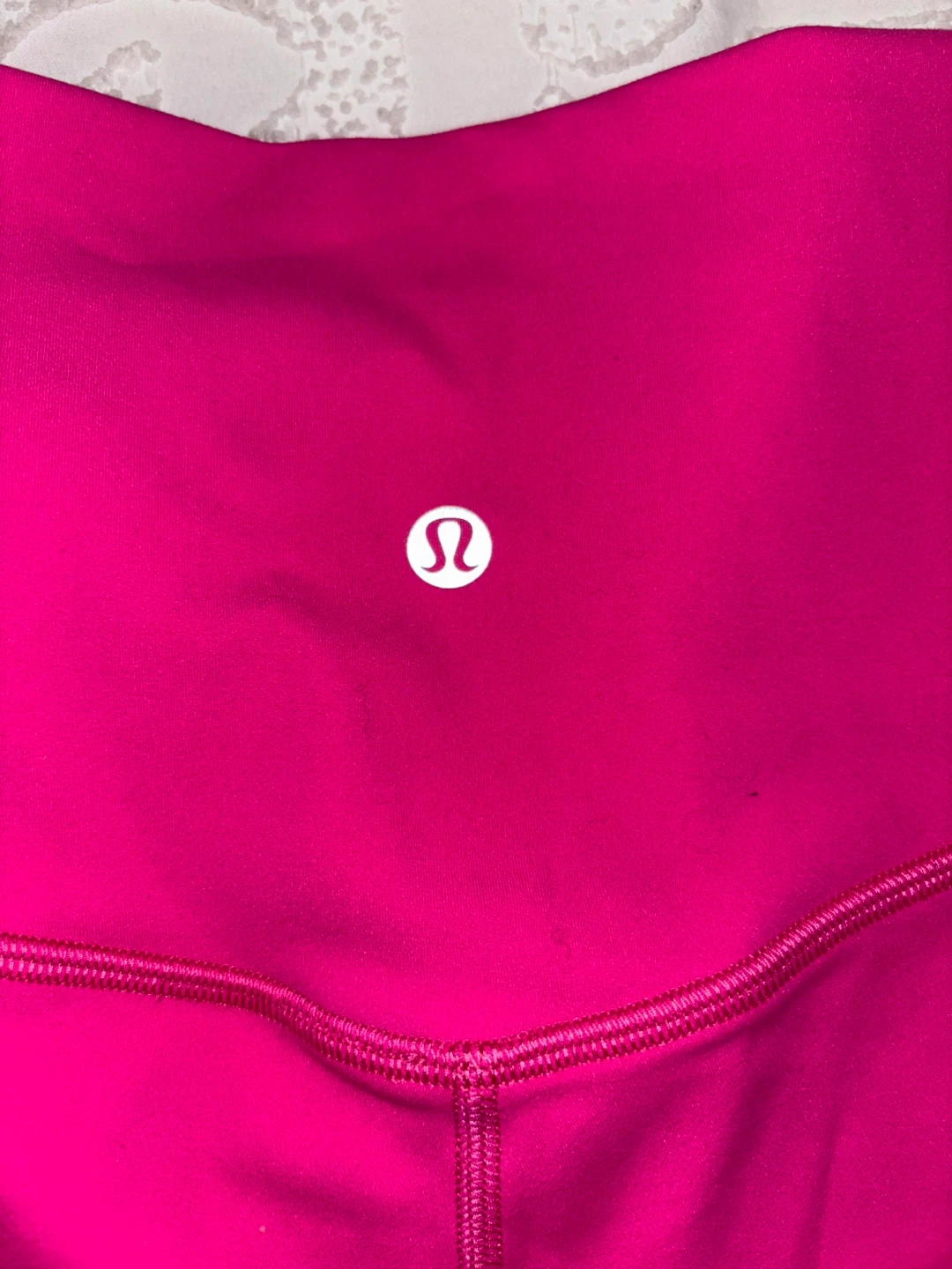 Hot pink Lululemon leggings in great condition! These are a size 6 and feature the Lululemon logo on the back. Wore them twice! Pickup near Square one.
