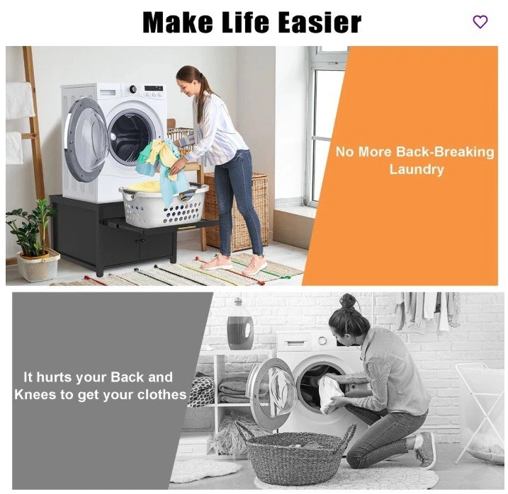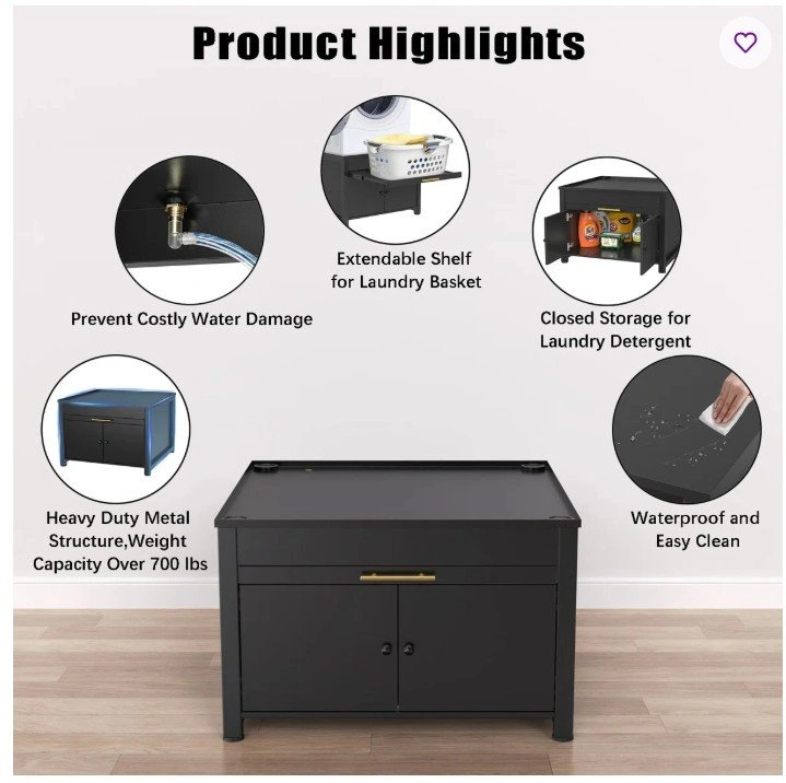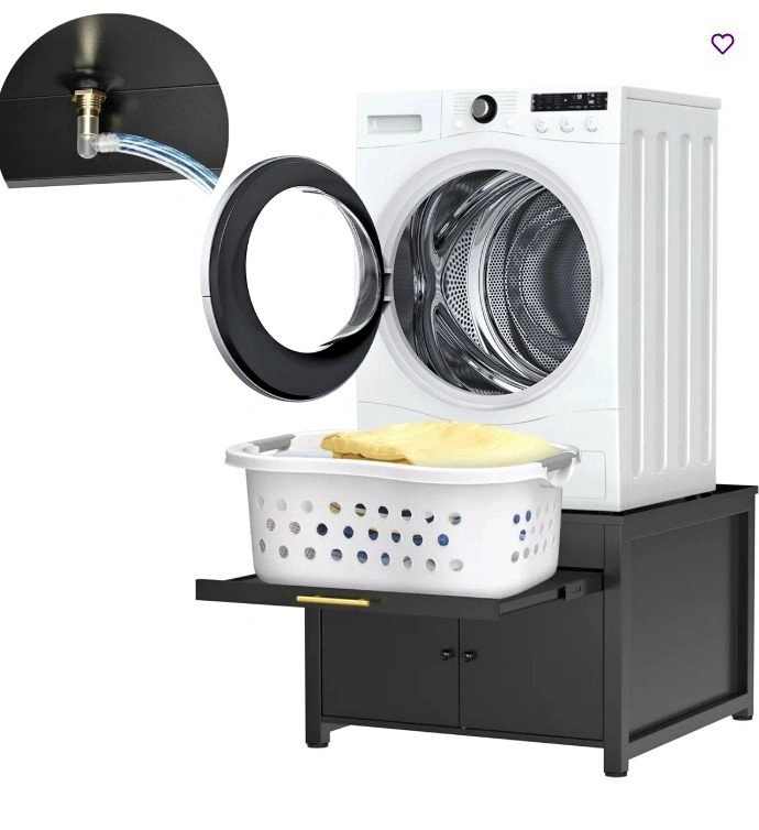 10We're selling 30 washer and dryer pedestals. 27 are in unopened boxes, and 3 are gently used. Features: Universal Compatibility: Fits most washing machines and dryers on the market with a 29"*29" top. It has a bottom storage cabinet. Ergonomic Design: Raises your washer and dryer by 22", making it easier to load and unload laundry. Retractable Laundry Basket Holder: Features a telescopic laundry basket holder. Integrated Drainage System: Designed with a built-in drainage tube and rust-proof metal finishes. Solid Construction and Safety: The pedestal is supported by a heavy-duty steel frame capable of holding up to 700 lbs. It also has anti-vibration pads. Images used from Wayfair as boxes are unopened. Overall Dimensions: 22'' H X 29'' W X 29'' D Overall Product Weight: 700 lb. Material: Engineered Wood, Steel Country of Origin: China