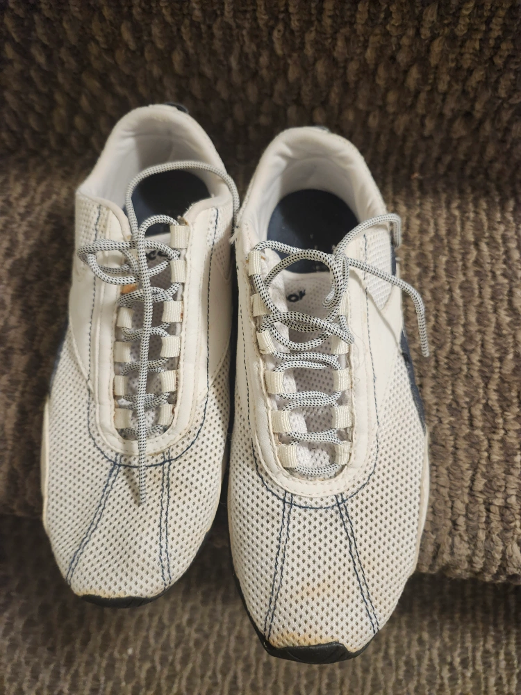 1000+Selling a pair of Reebok running shoes in white with navy accents. They're in good condition and ready for your next run!
