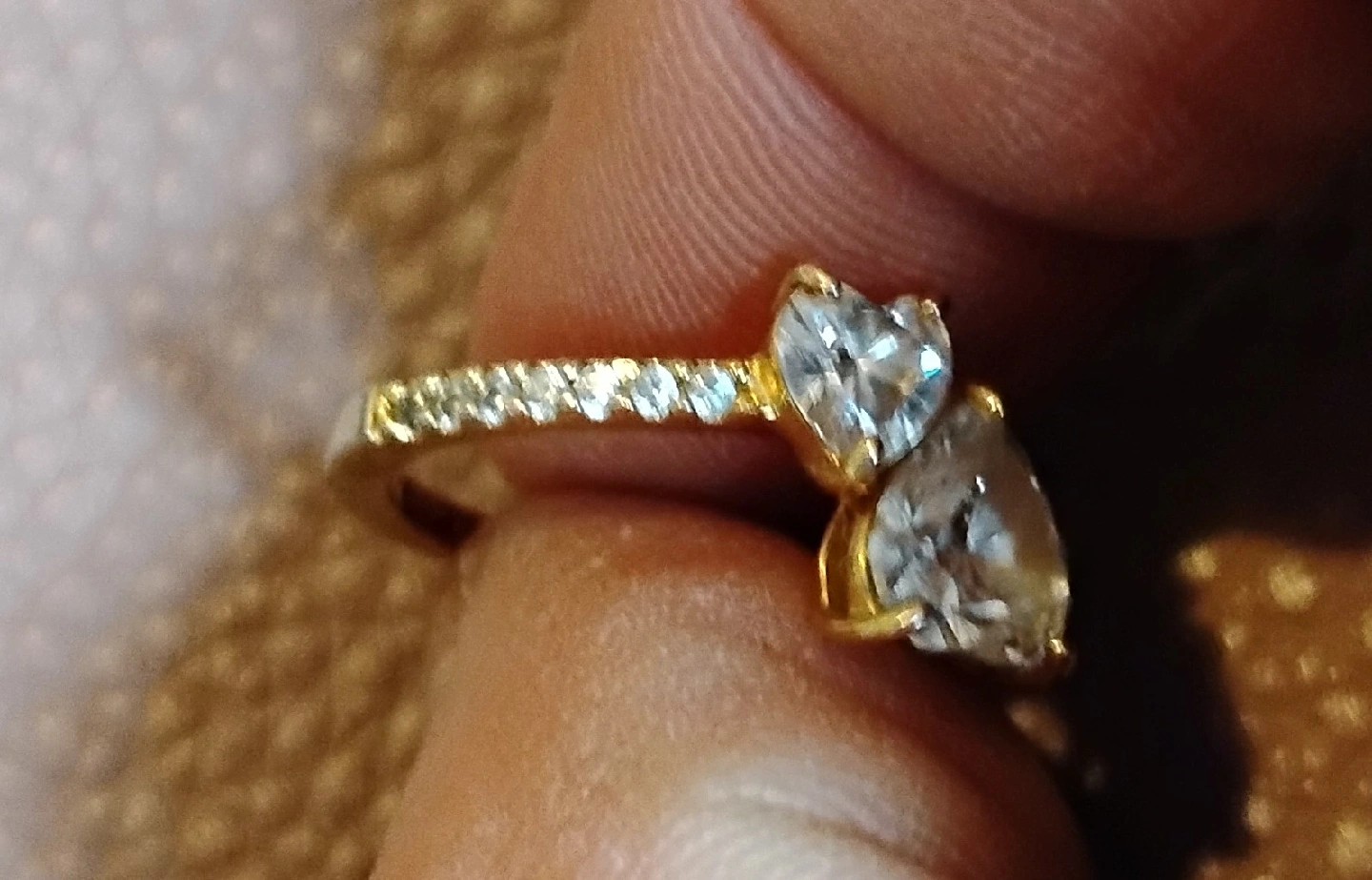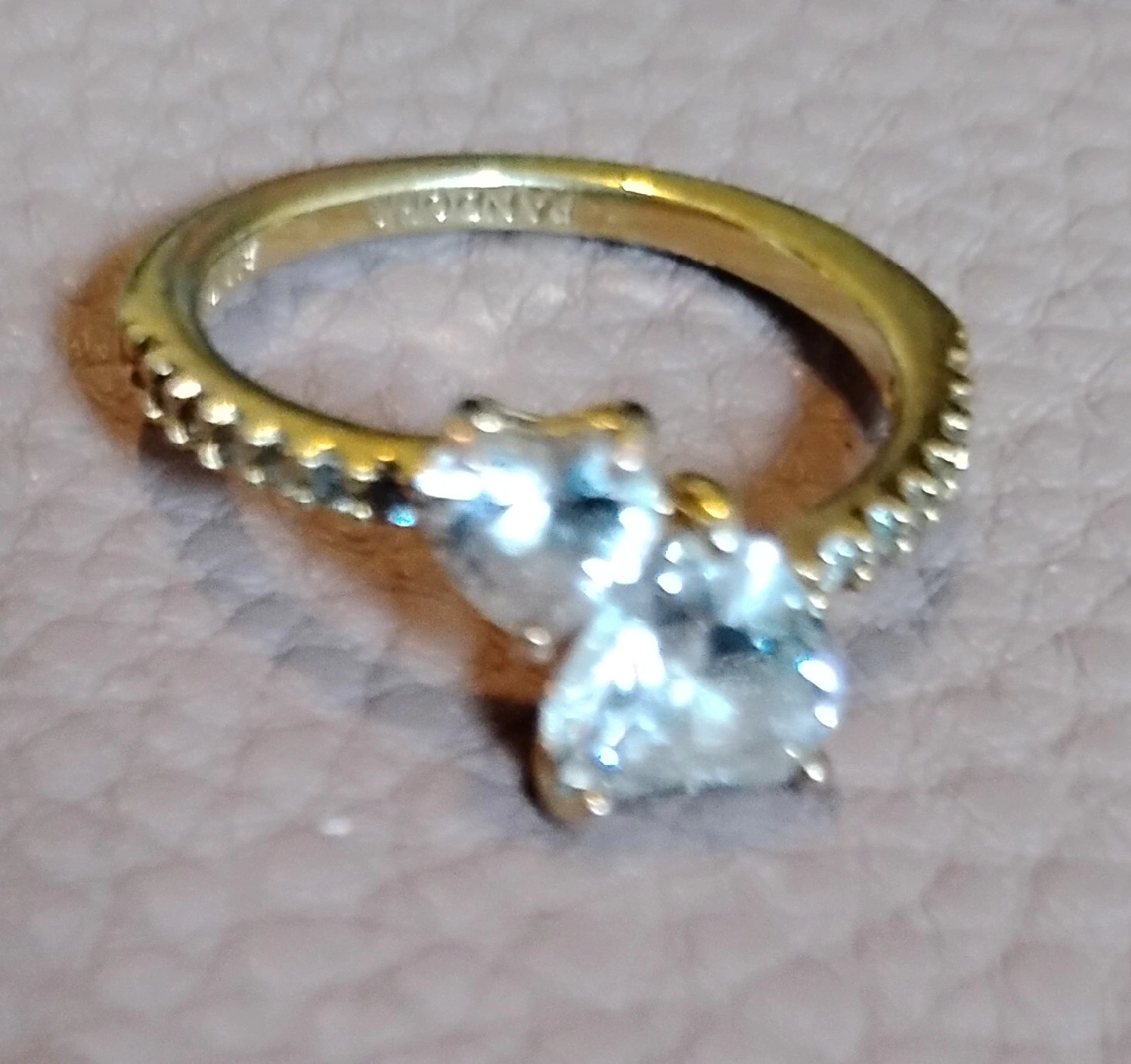 65Selling a beautiful Pandora Wish Sparkling Double Heart Ring. It's a lovely gold colour with sparkling stones. The ring features two heart-shaped stones, adding a touch of elegance to any outfit