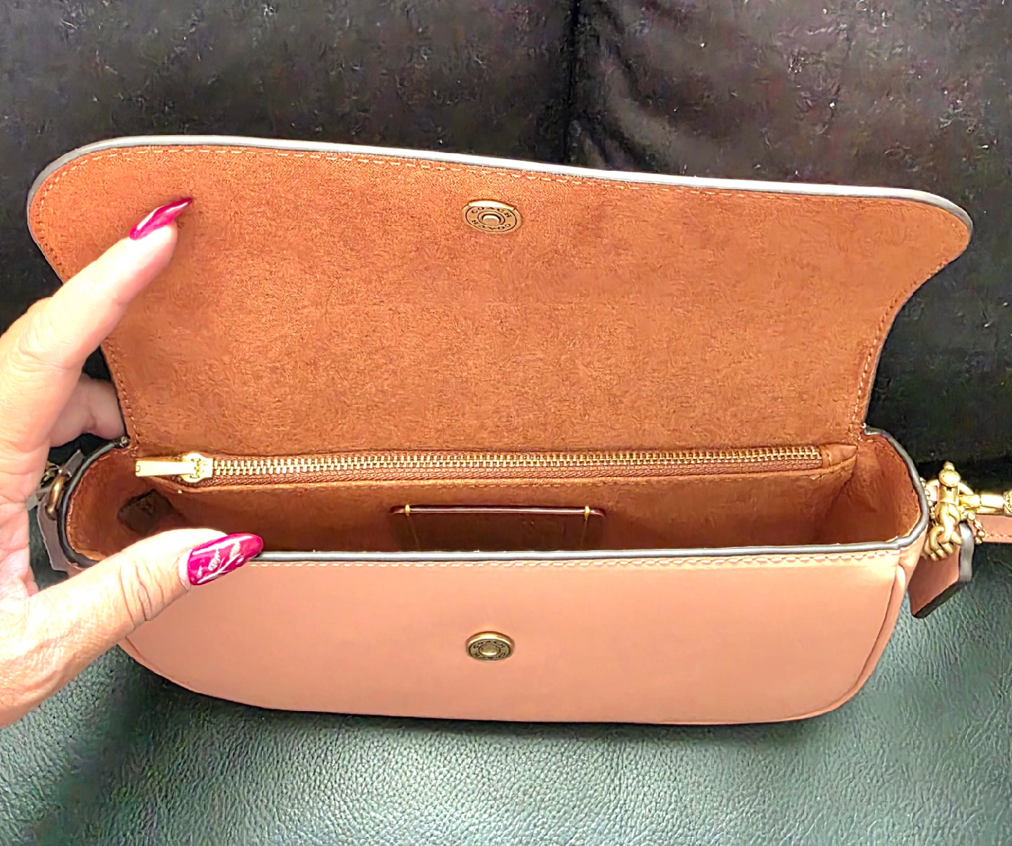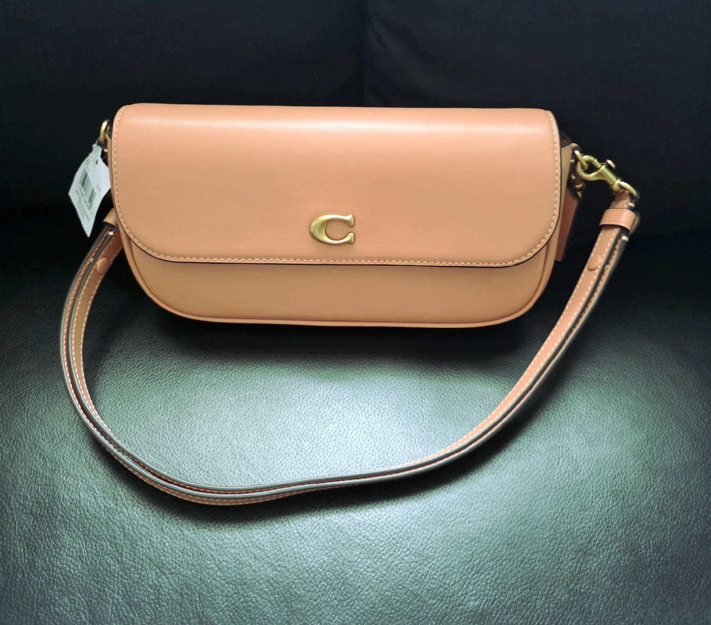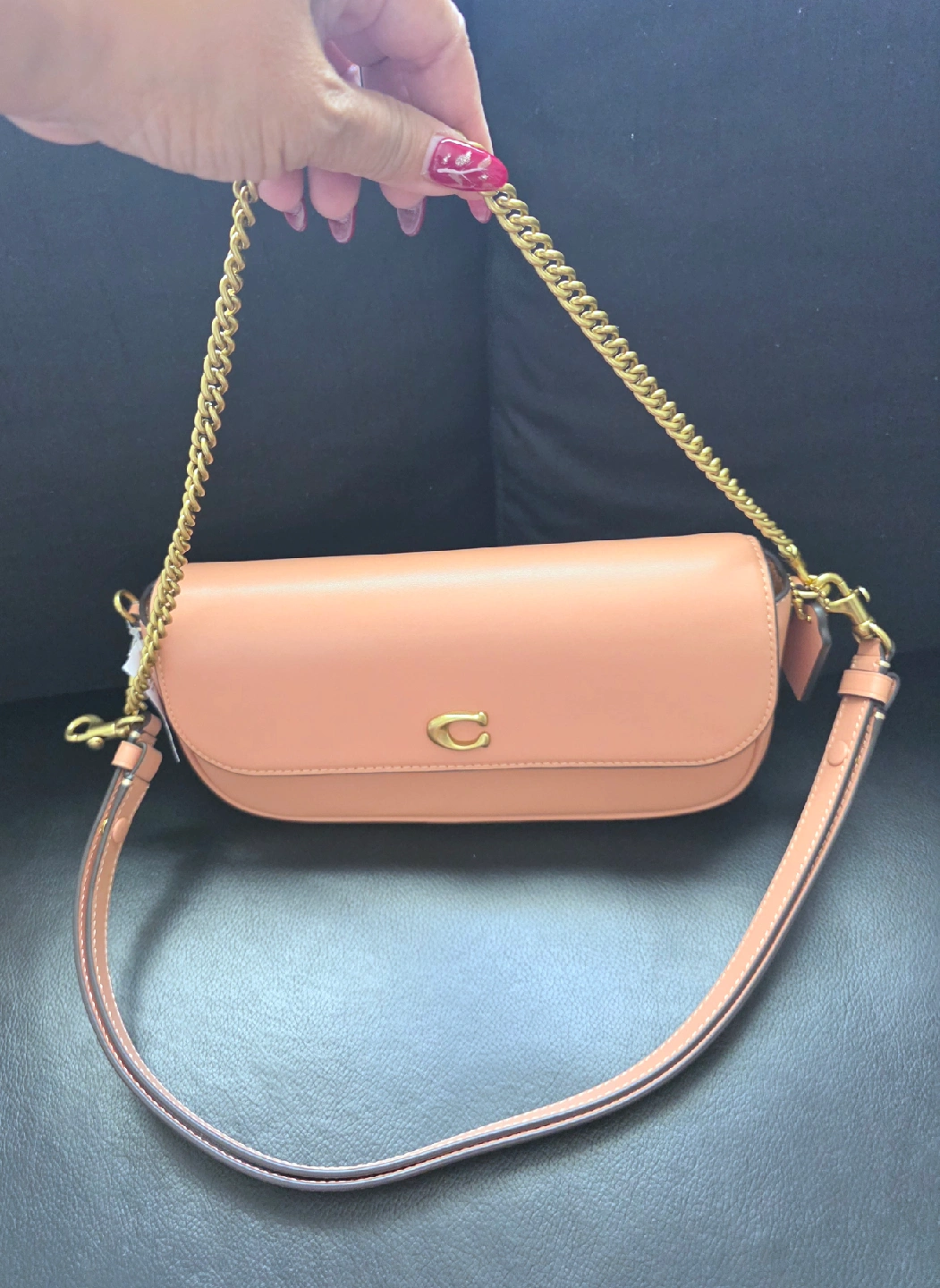 10Chic Coach crossbody or shoulder bag in glovetanned leather. Features elegant gold hardware. Ideal for versatile styling - can be with as a shoulder bag or as a crossbody with a detachable adjustable leather strap. Brand new with tag