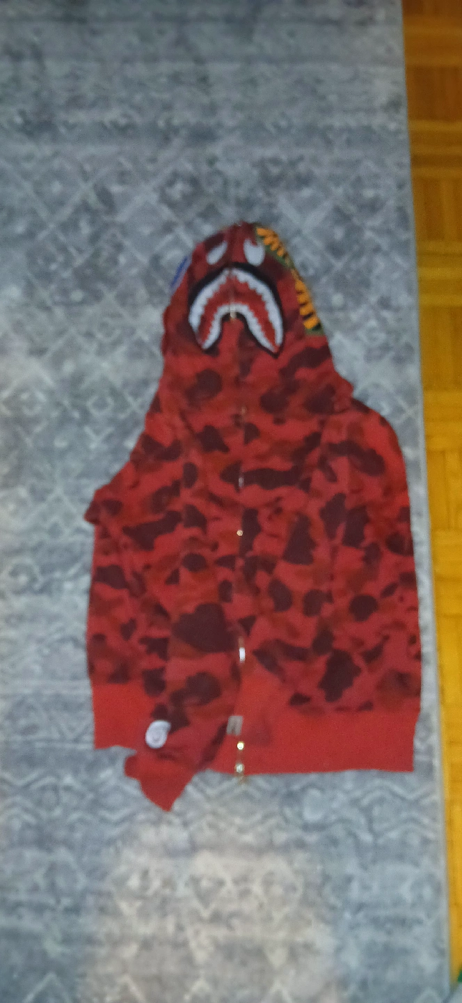 23Selling a Bathing Ape (BAPE) hoodie with the iconic shark design. It features a red camo pattern and is in great condition. Perfect for adding a unique streetwear piece to your wardrobe!