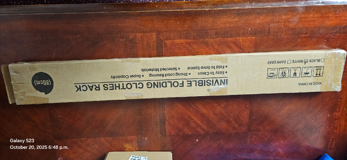 Selling an Invisible Folding Clothes Rack! It's easy to clean and folds to save space. It also has a strong load bearing capacity and is made of selected materials. The size is 80cm. It's BRAND NEW still in box never used.