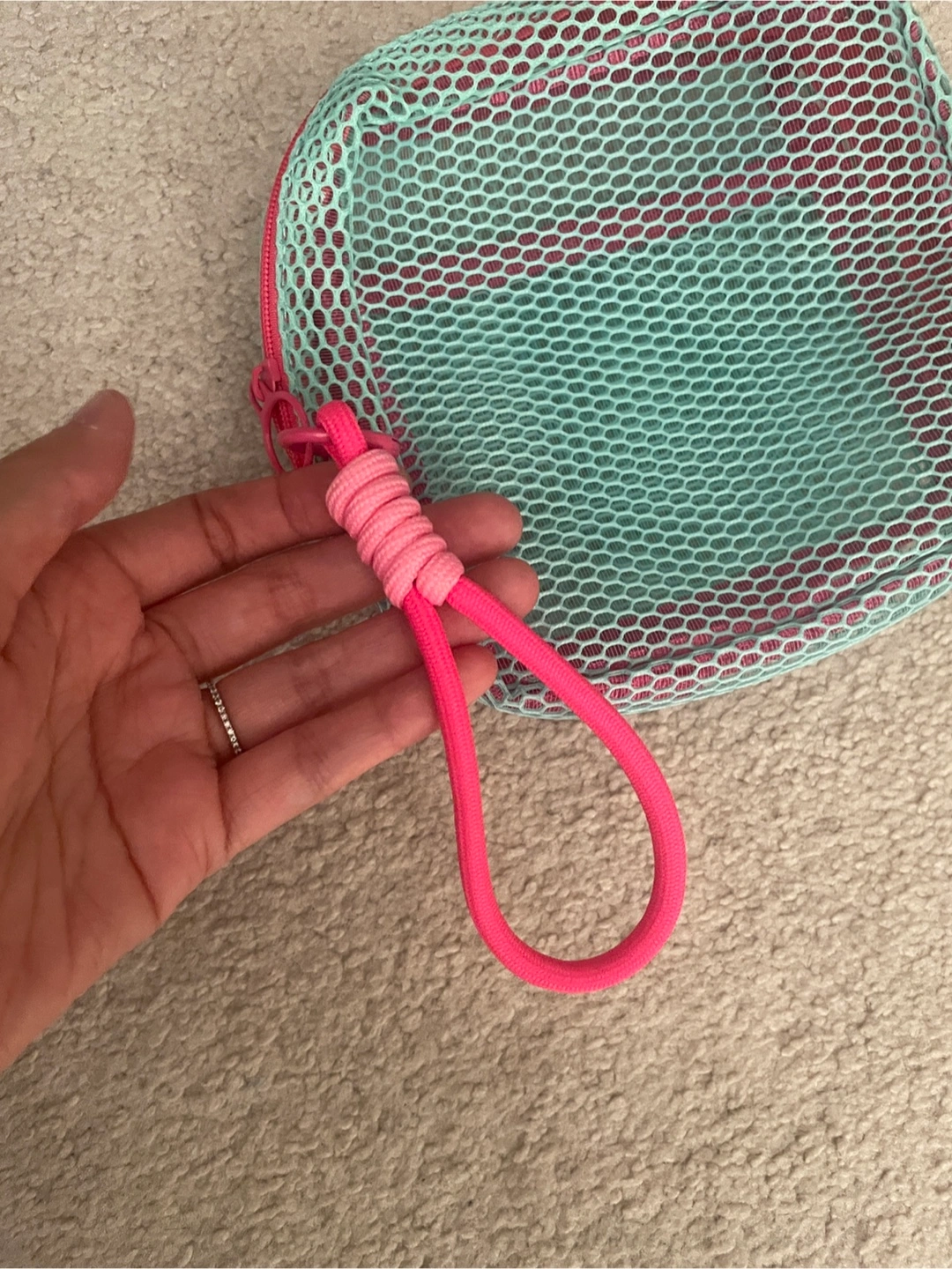 Mesh Zipper Pouch - Pink & Aqua