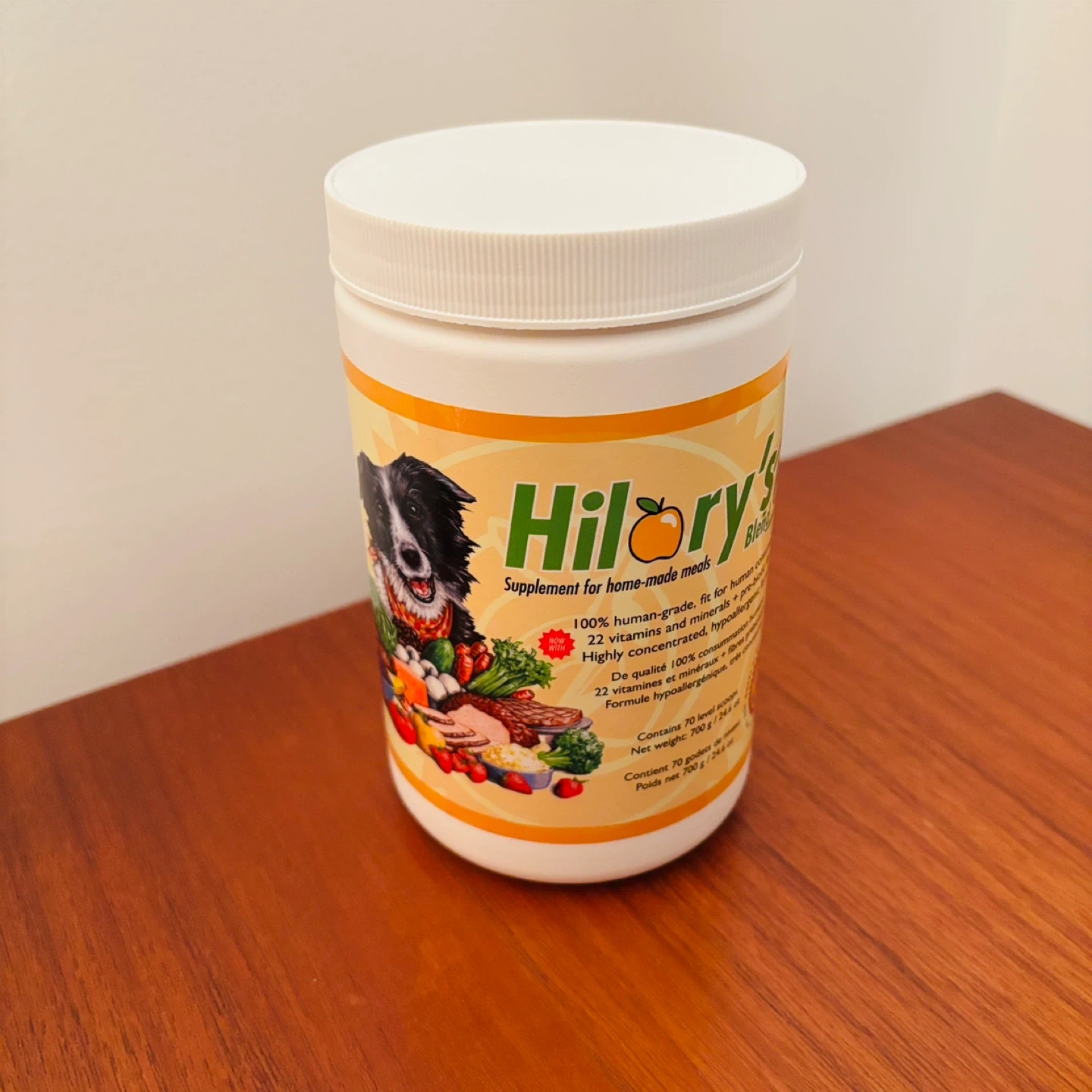 Selling Hilary's Blend Meal Supplement for Dogs! This supplement contains high-quality ingredients that are easily absorbed. It contains 20 essential nutrients and is a human-grade, pharmaceutical-grade supplement. Size is 700g