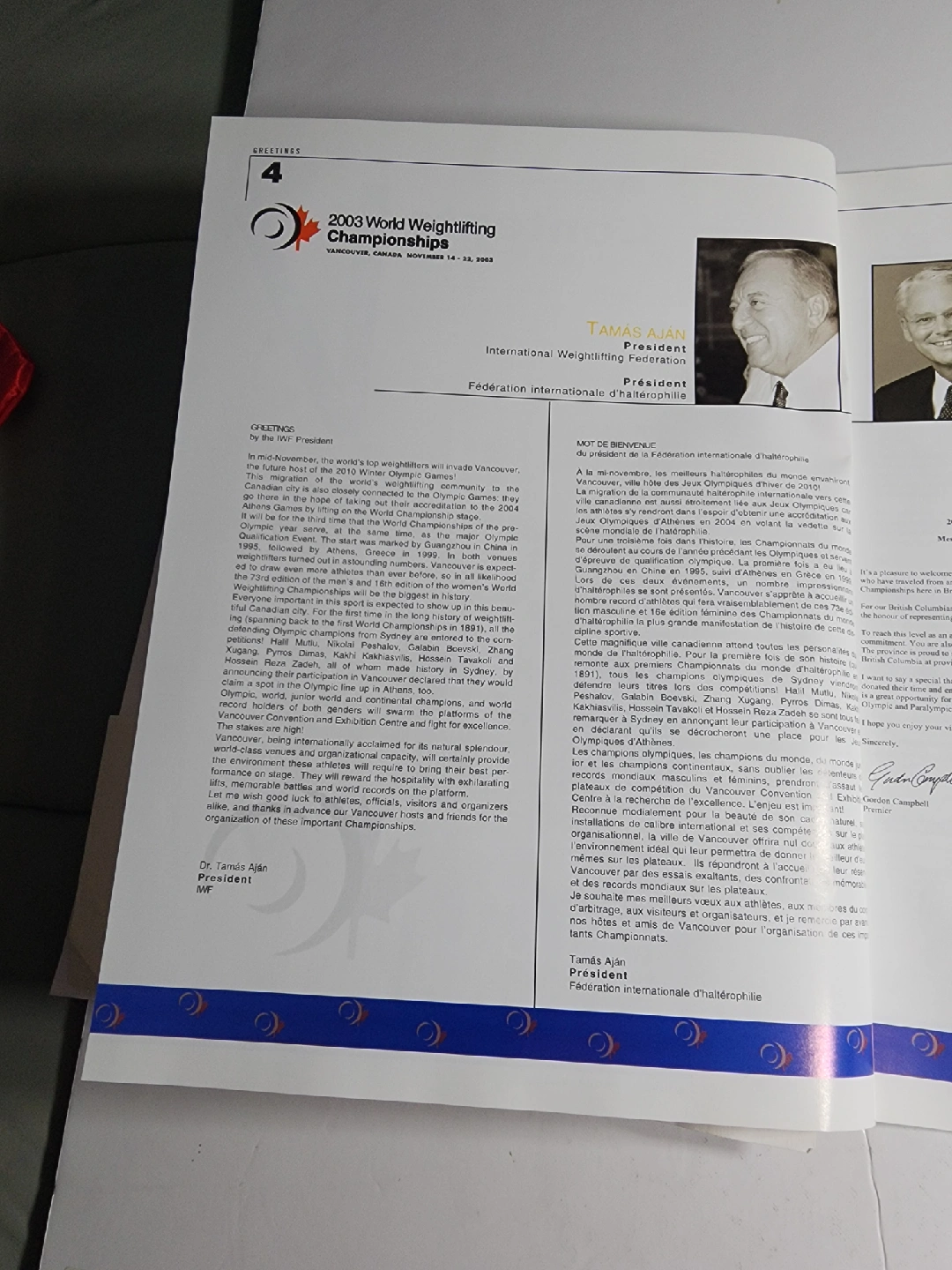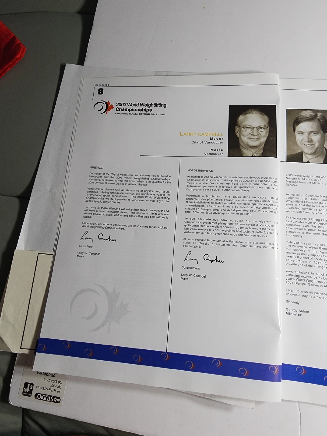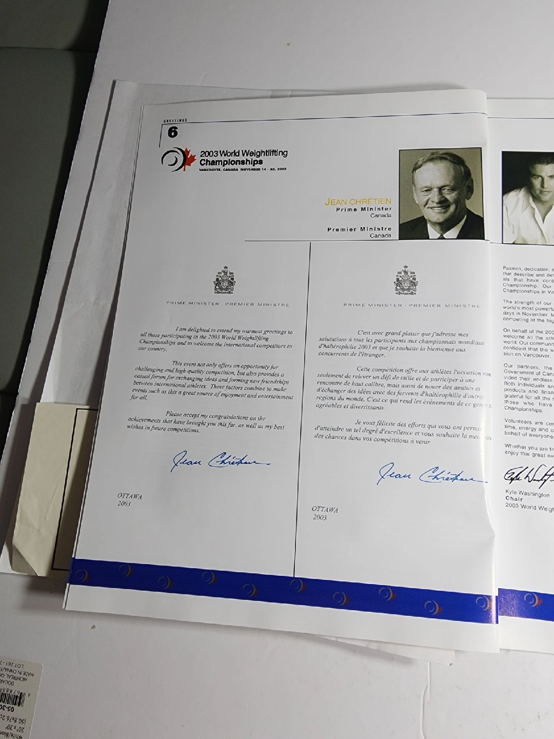129Selling a program from the 2003 World Weightlifting Championships held in Vancouver, British Columbia