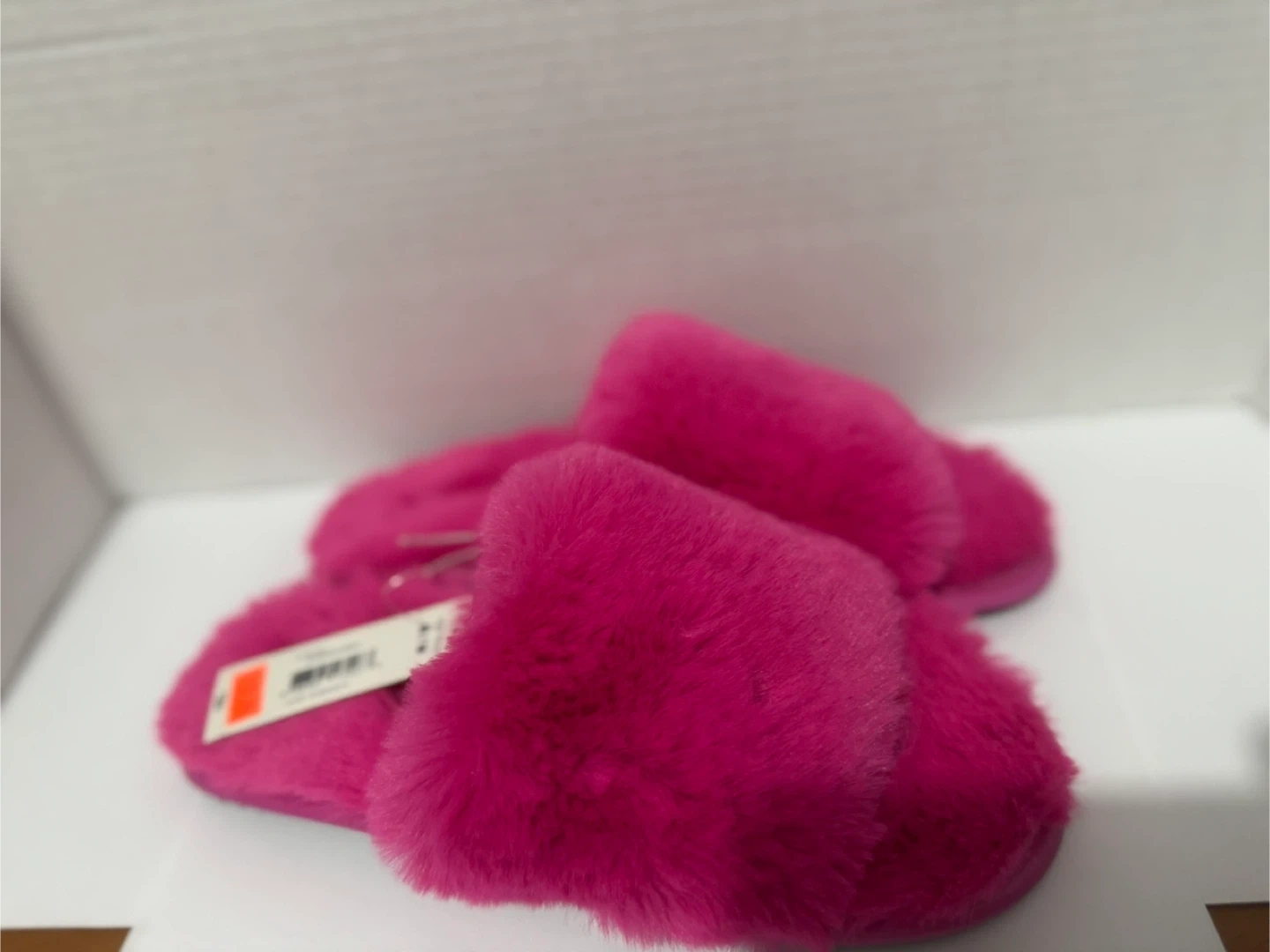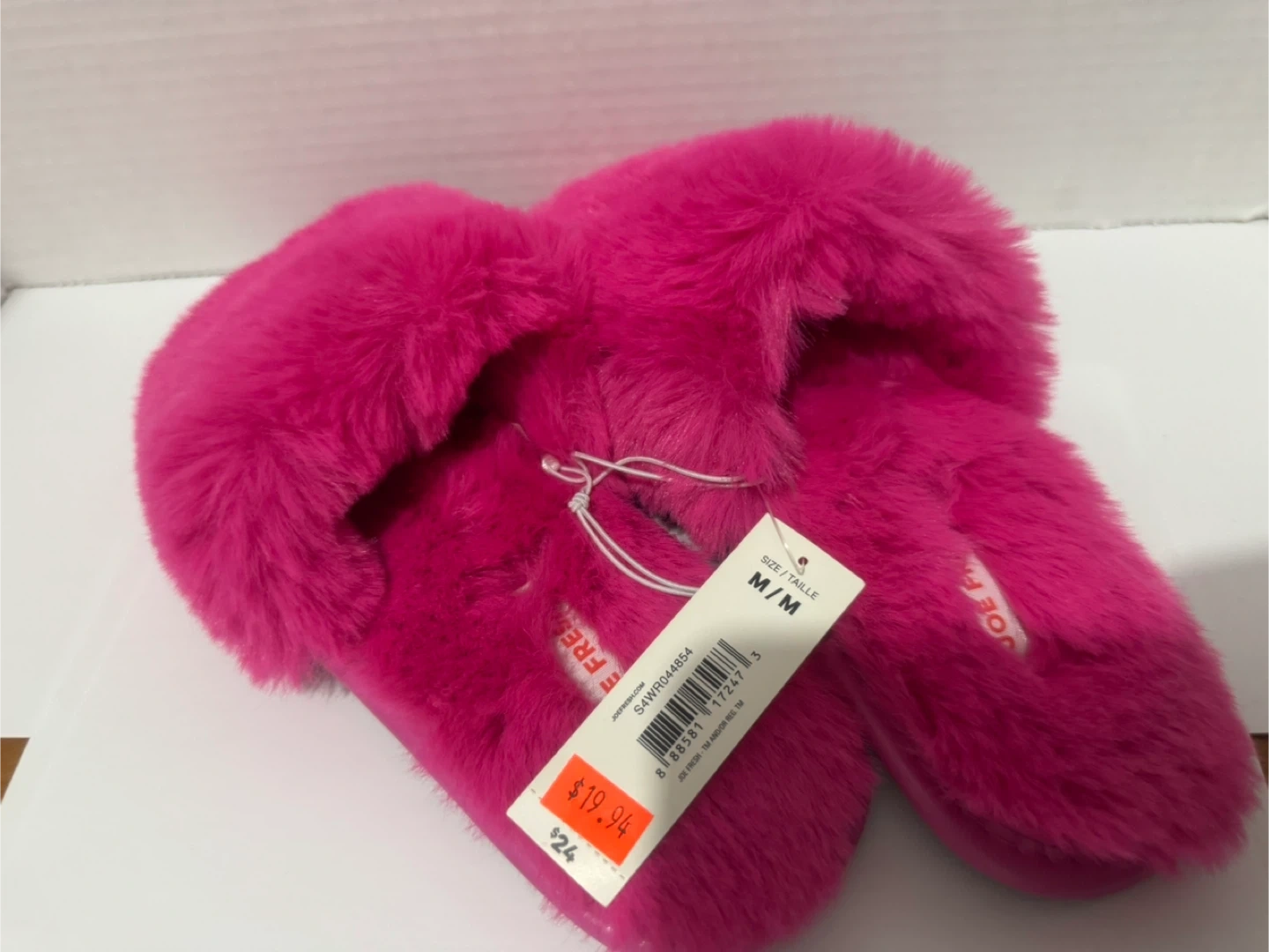 78Super cute and comfy Joe Fresh fuzzy slippers in a vibrant pink! They're a size M/M and are brand new with tags. Originally priced at $19.94, these slippers are perfect for keeping your feet warm and cozy around the house
