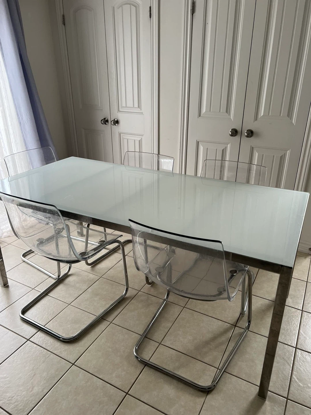 Modern Kitchen Table with 6 Clear Chairs – Glass & Chrome Set ✨