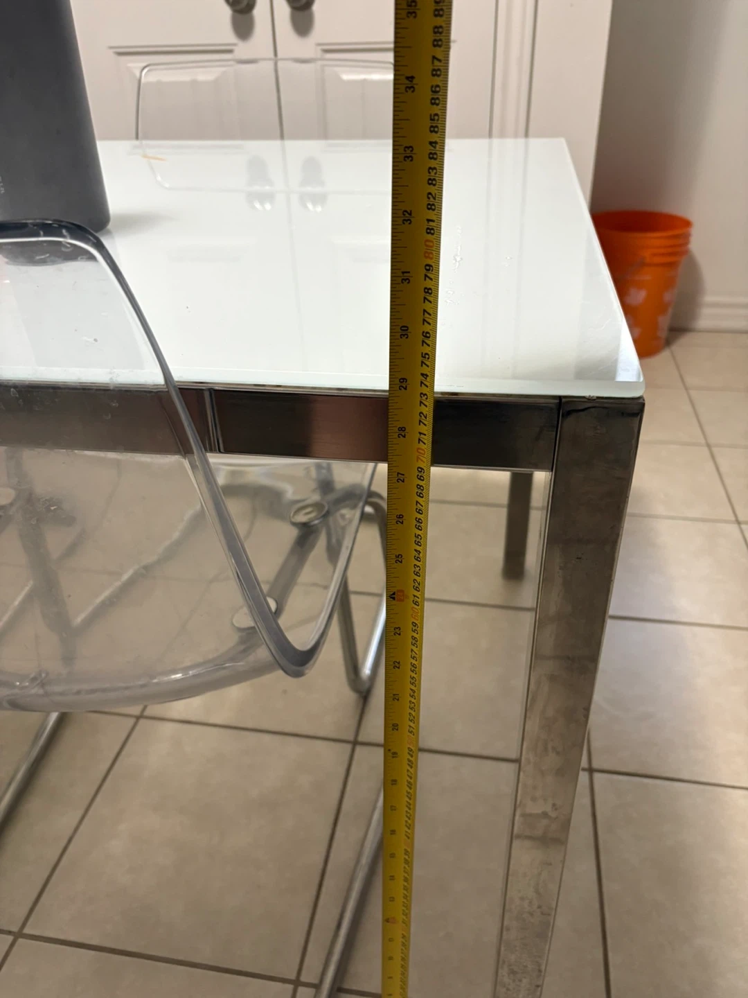 Modern minimalist design with a frosted glass top and sturdy chrome metal legs.