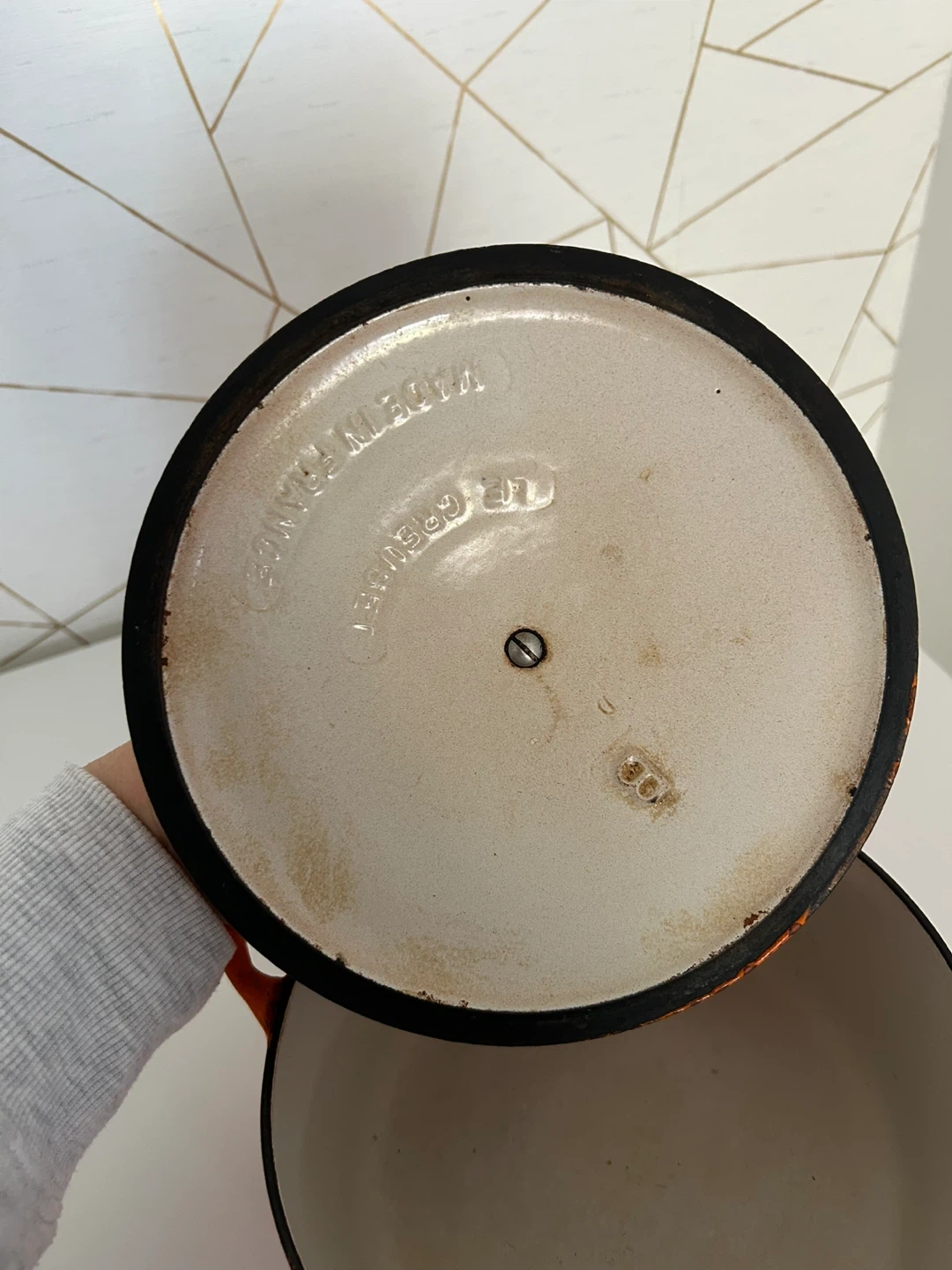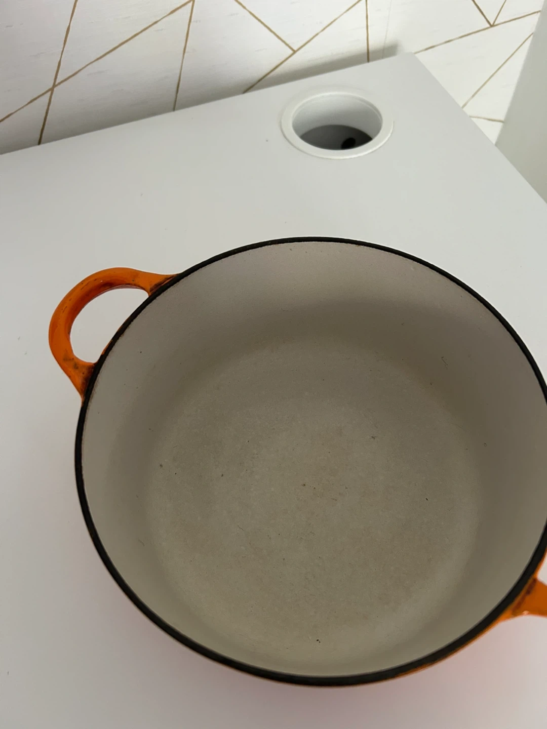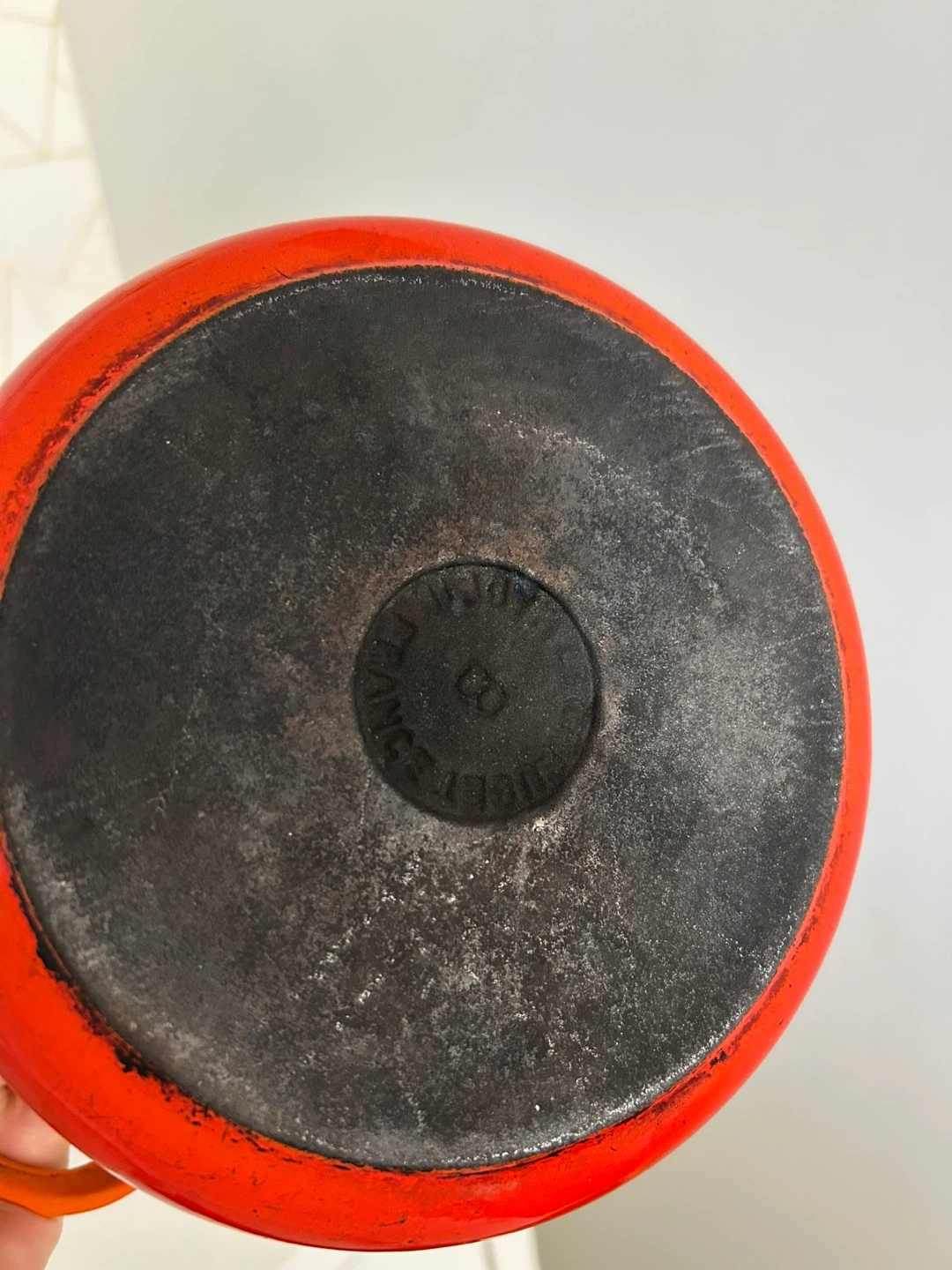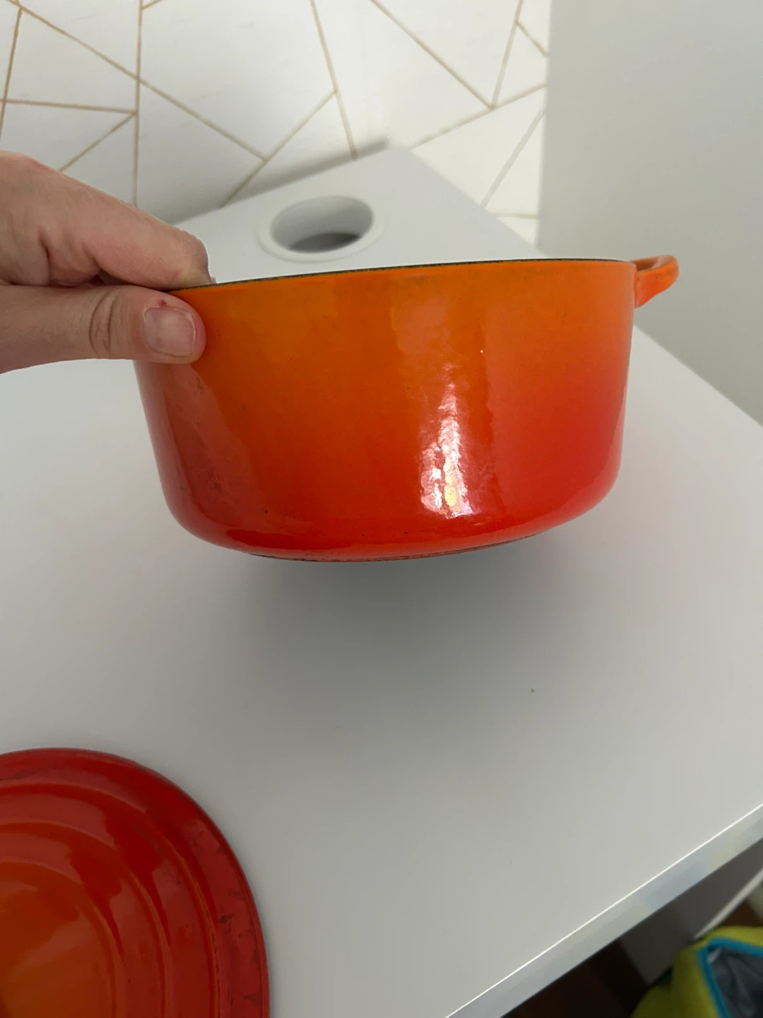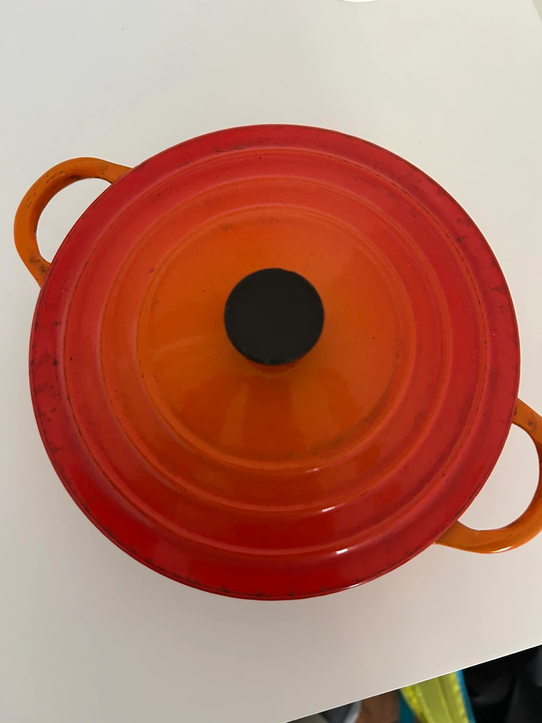 15Selling a vintage Le Creuset Dutch oven in orange. It's in good condition and ready for your next culinary adventure! Perfect for stews, braising, and baking. There are some signs of use. About 16cm length