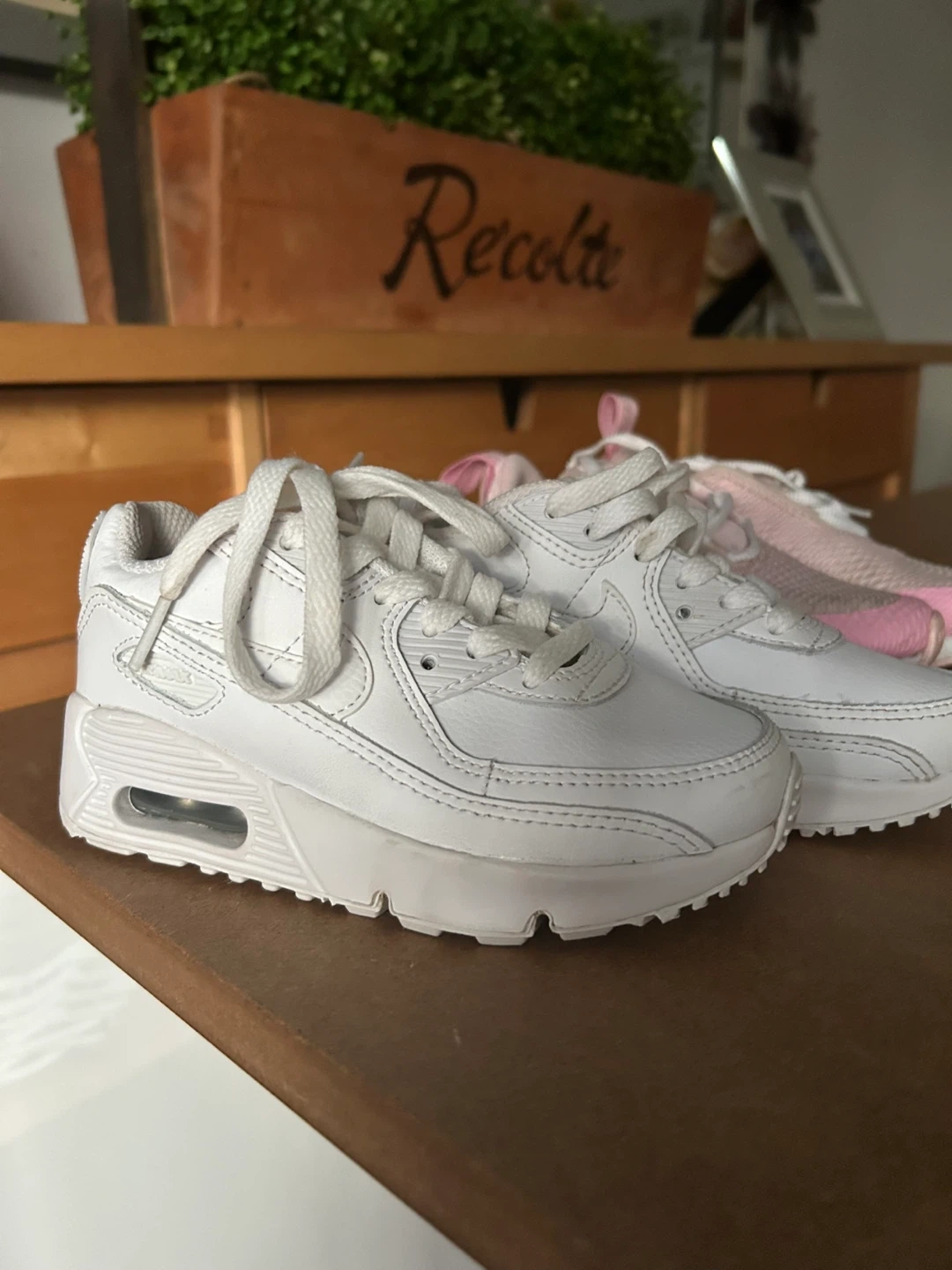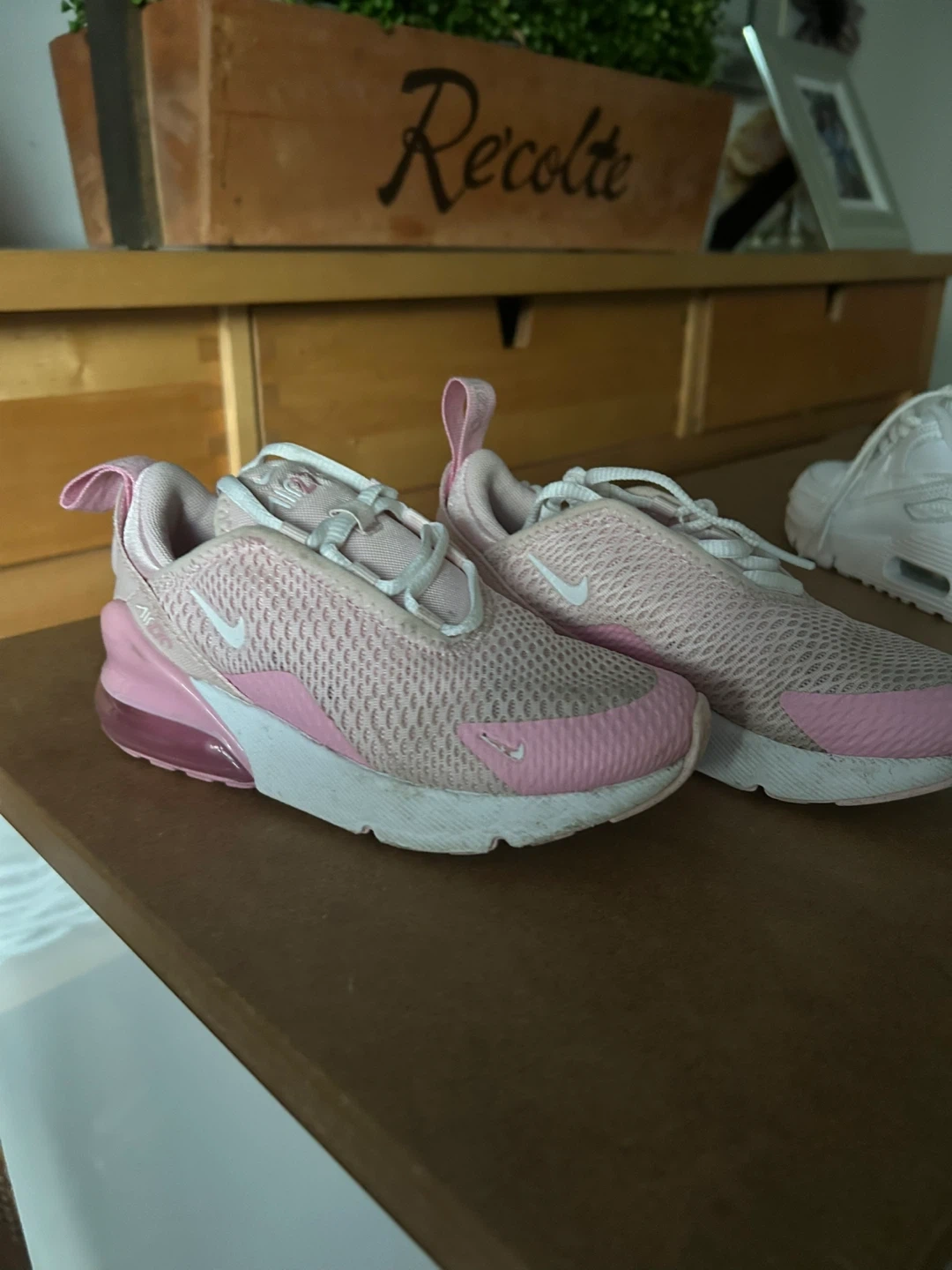 15Selling a pair of Nike shoes. One is a white Nike Air Max 90 and the other is a pink Nike Air Max 270. Both are size 11C. They are in good used condition.
