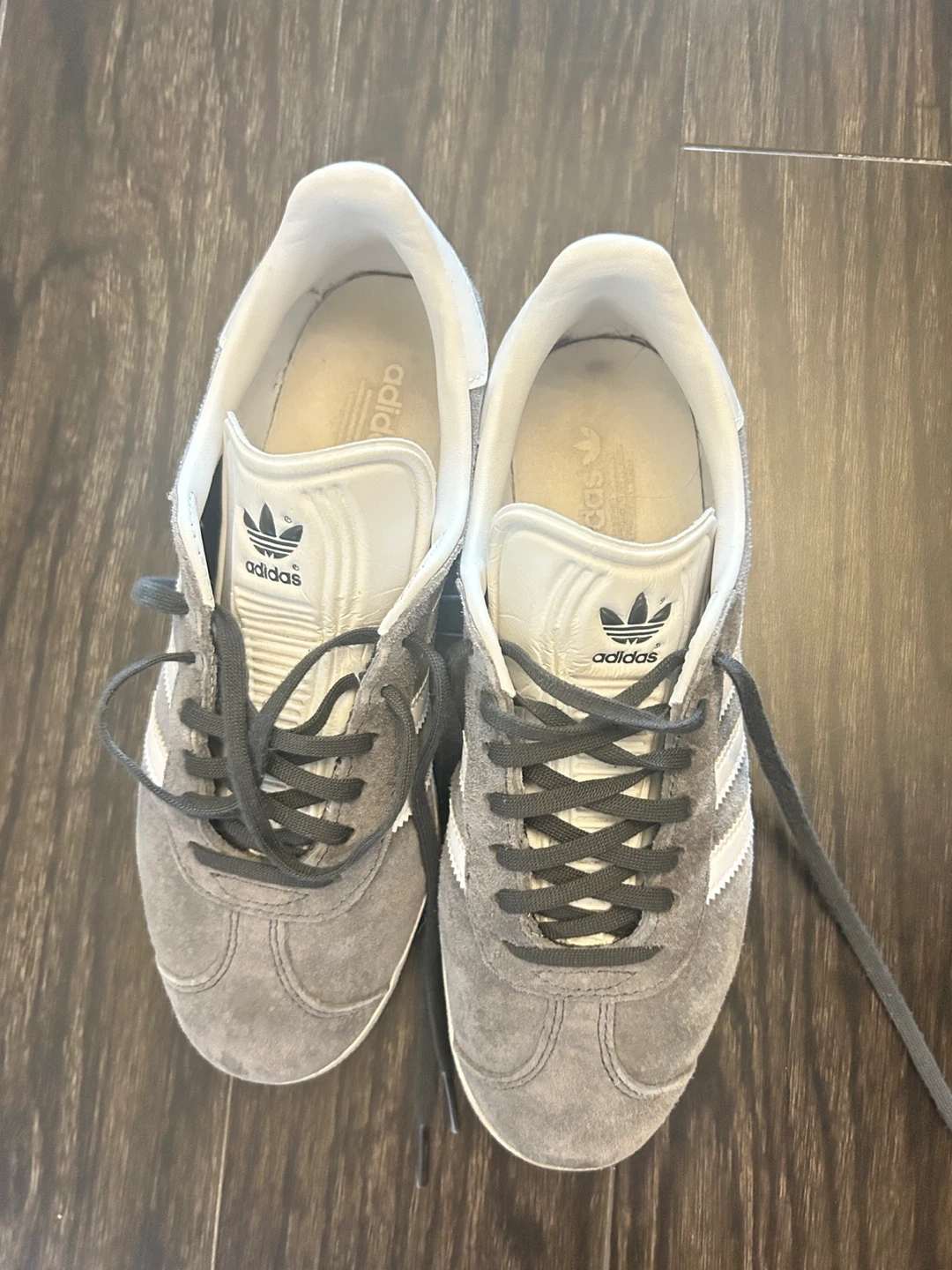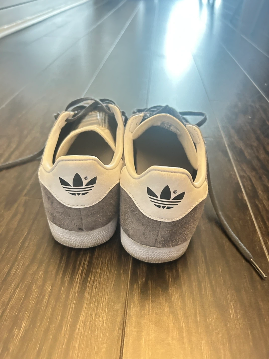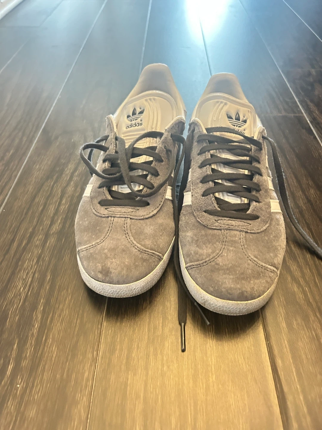 71Selling a pair of Adidas Gazelle sneakers in grey suede! They are a US size 6, barely work.
