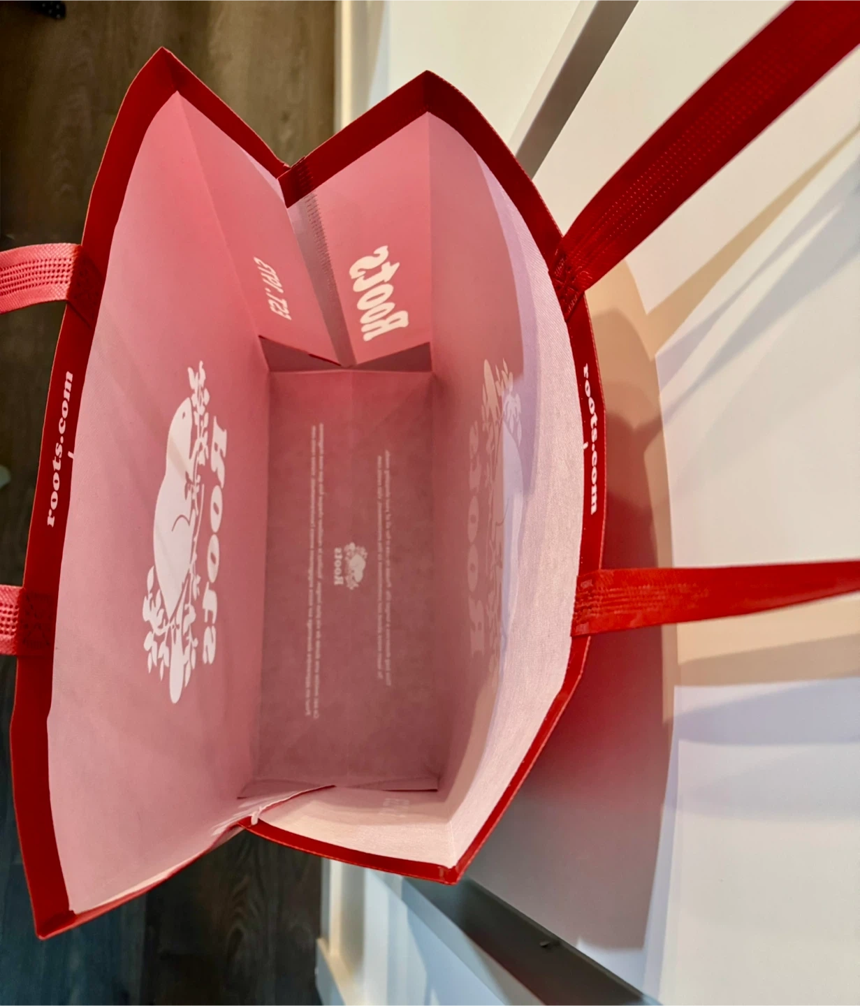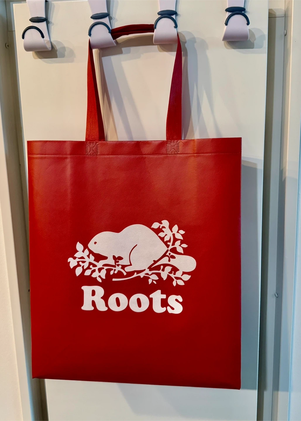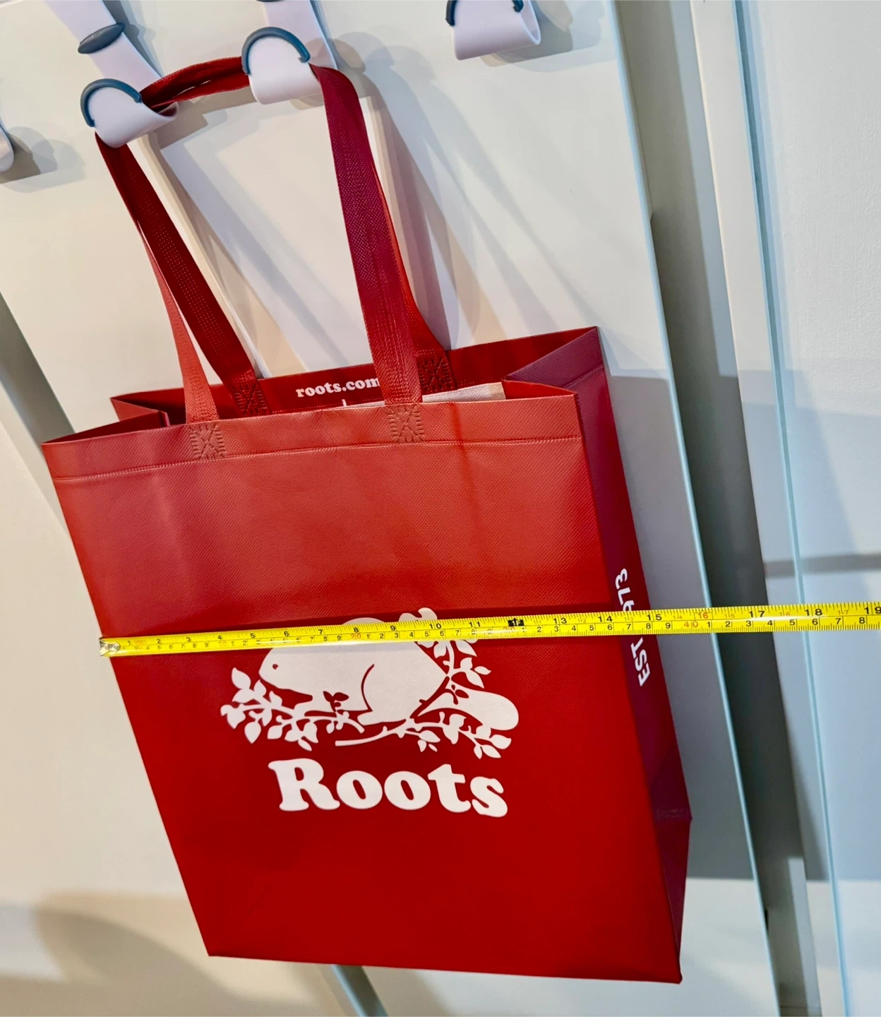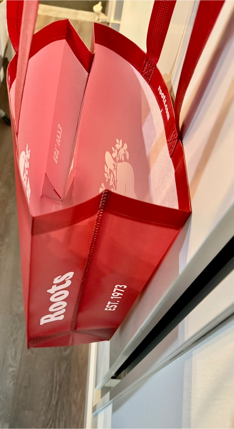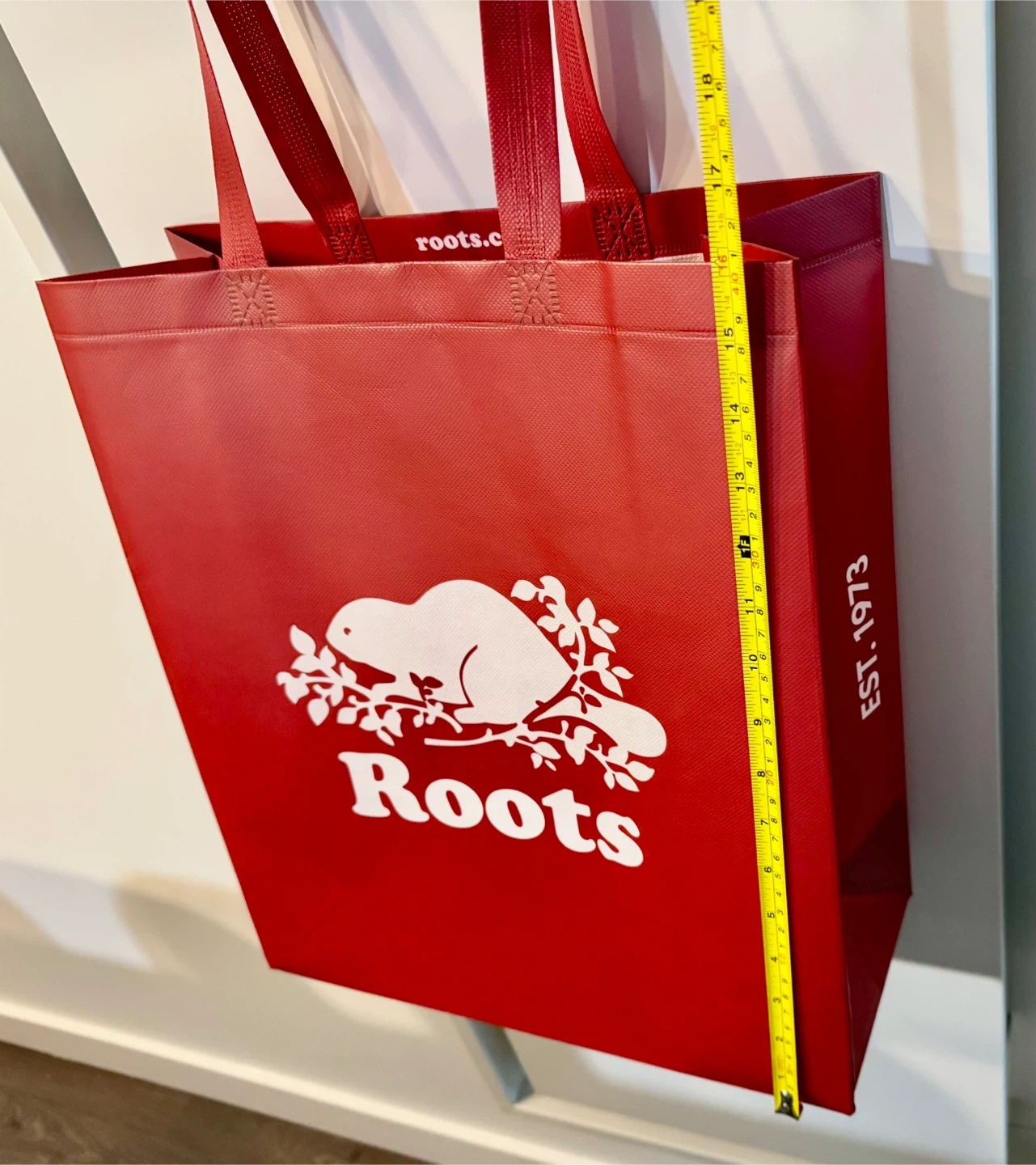 44Roots Red Tote Bag - Brand New! Selling a Roots tote bag in red! It's in great condition and ready for a new home. Perfect for carrying groceries, books, or anything else you need. The dimensions are approximately 17 inches wide and 18 inches tall.