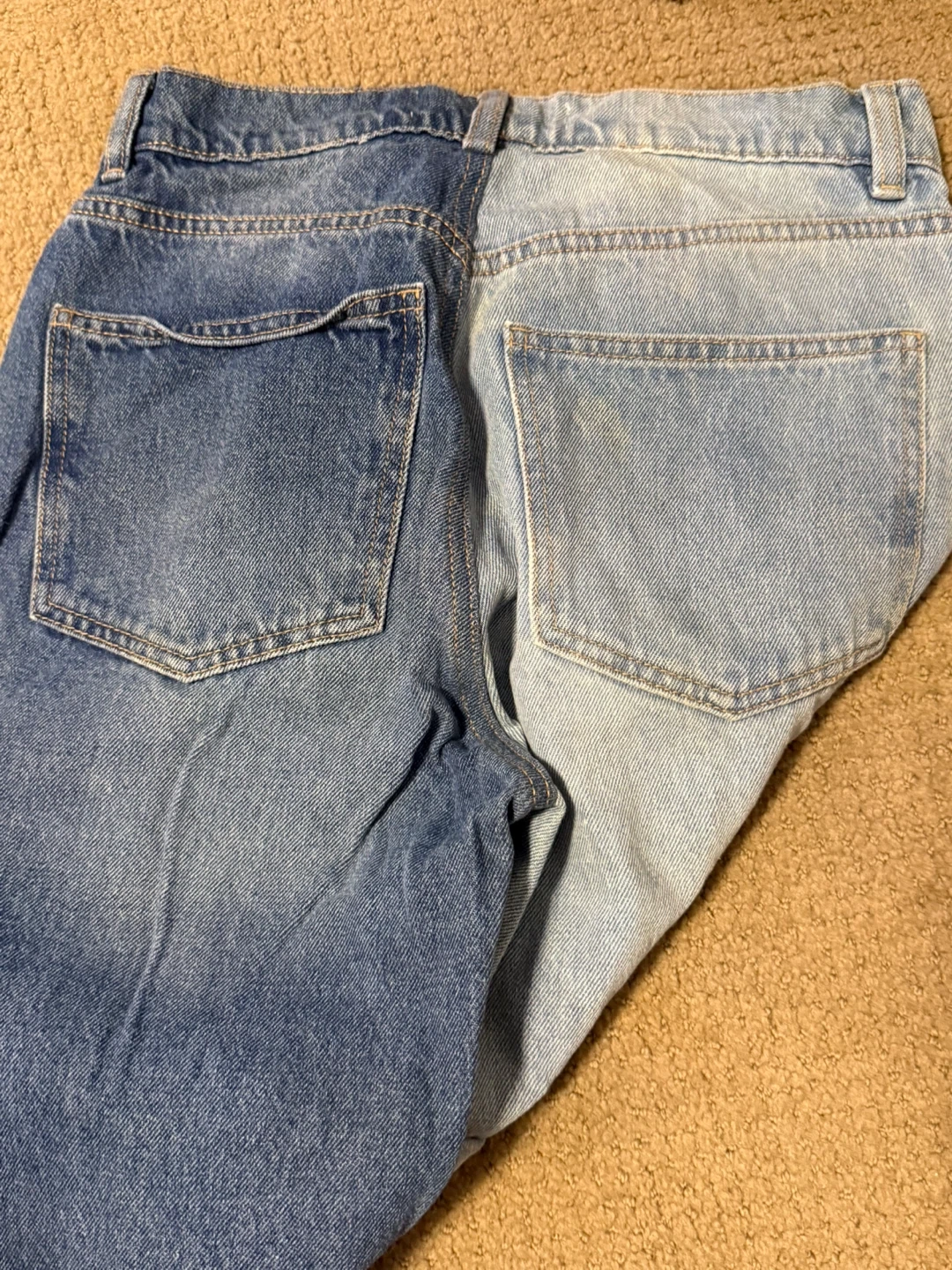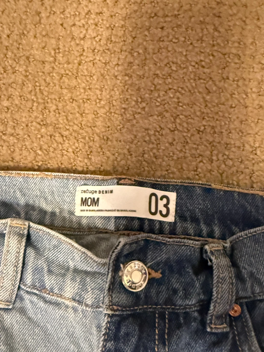 65Selling a pair of Refuge Denim mom jeans in a unique two-tone design! One leg is a lighter wash, and the other is a darker wash. They are a size 3. My favourite jeans that unfortunately don’t fit me anymore :(