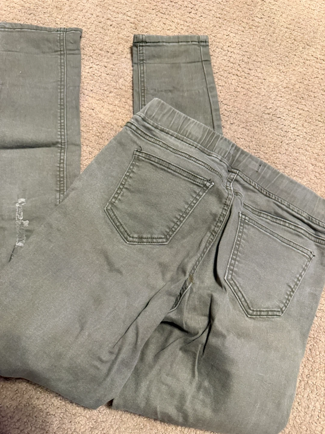65Selling a pair of JC & JQ jeans in size 7. They're in good condition and have a stylish distressed look with some rips. The material is 98% cotton and 2% spandex, making them comfy to wear!