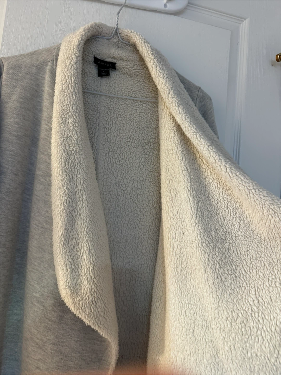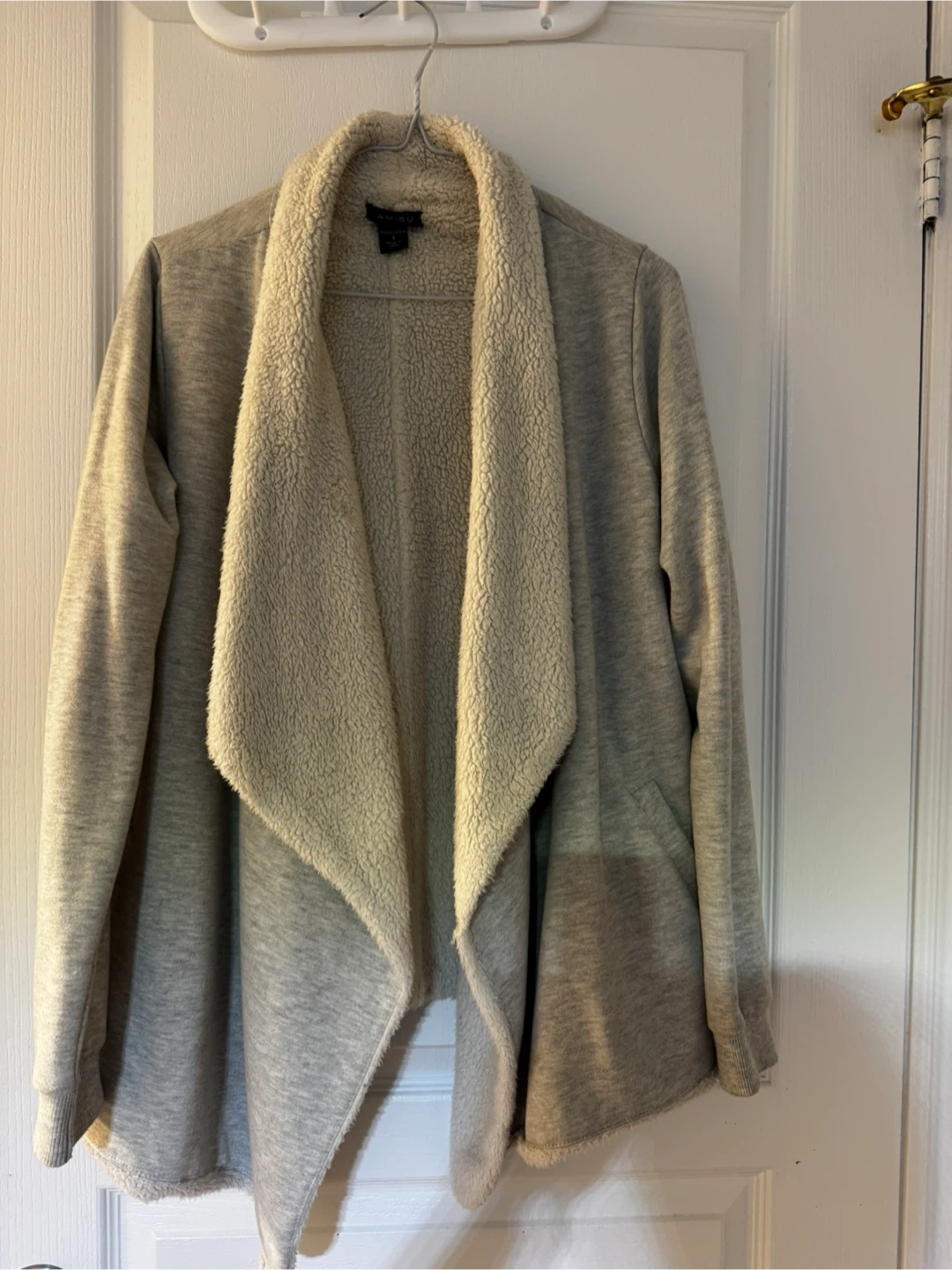 555This is Amiso brand cardigan, perfect for adding a layer of warmth and style to any outfit. It has a super soft lining, making it extra cozy. The size is a medium. There are two front pockets. Key Features: * Brand: Amiso * Size: Medium * Colour: Grey * Material: Soft Knit with Cozy Lining In very good condition $15 Yonge and finch area