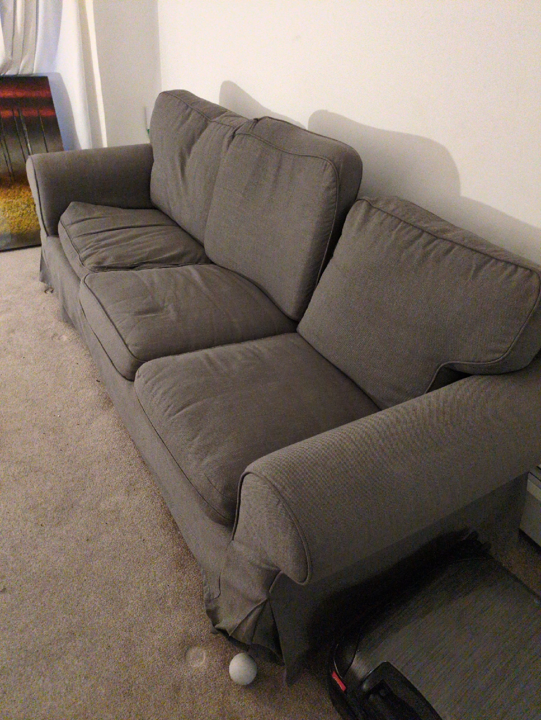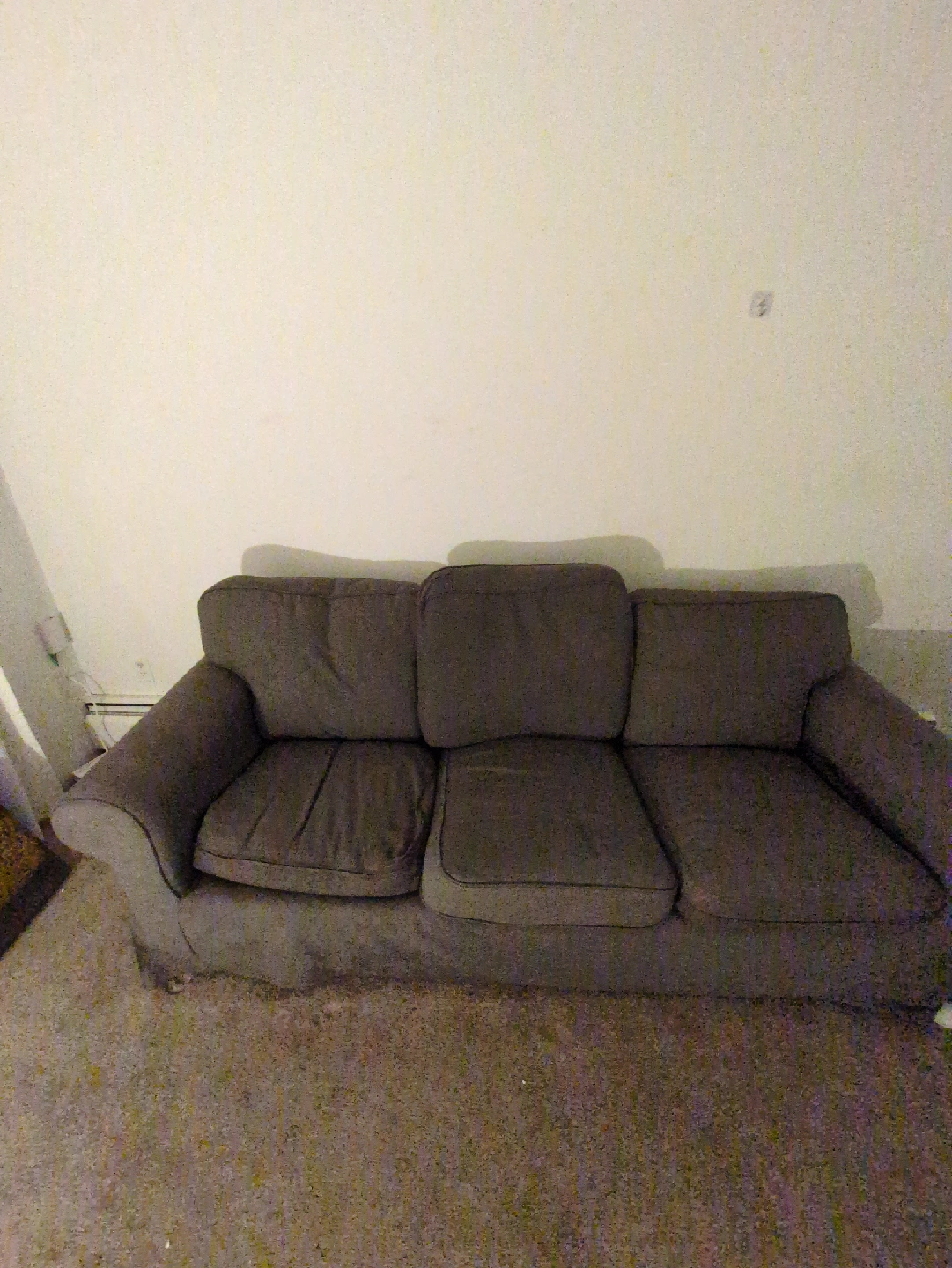 5Selling a comfy grey sofa that's in great shape! It's perfect for a living room or den. The colour is a neutral grey, so it will match almost any decor! Feel free to ask any questions! The couch is moderately heavy but easy access to the unit through the side door for entry and exit makes for a smooth transition. Street Parking is available out front.