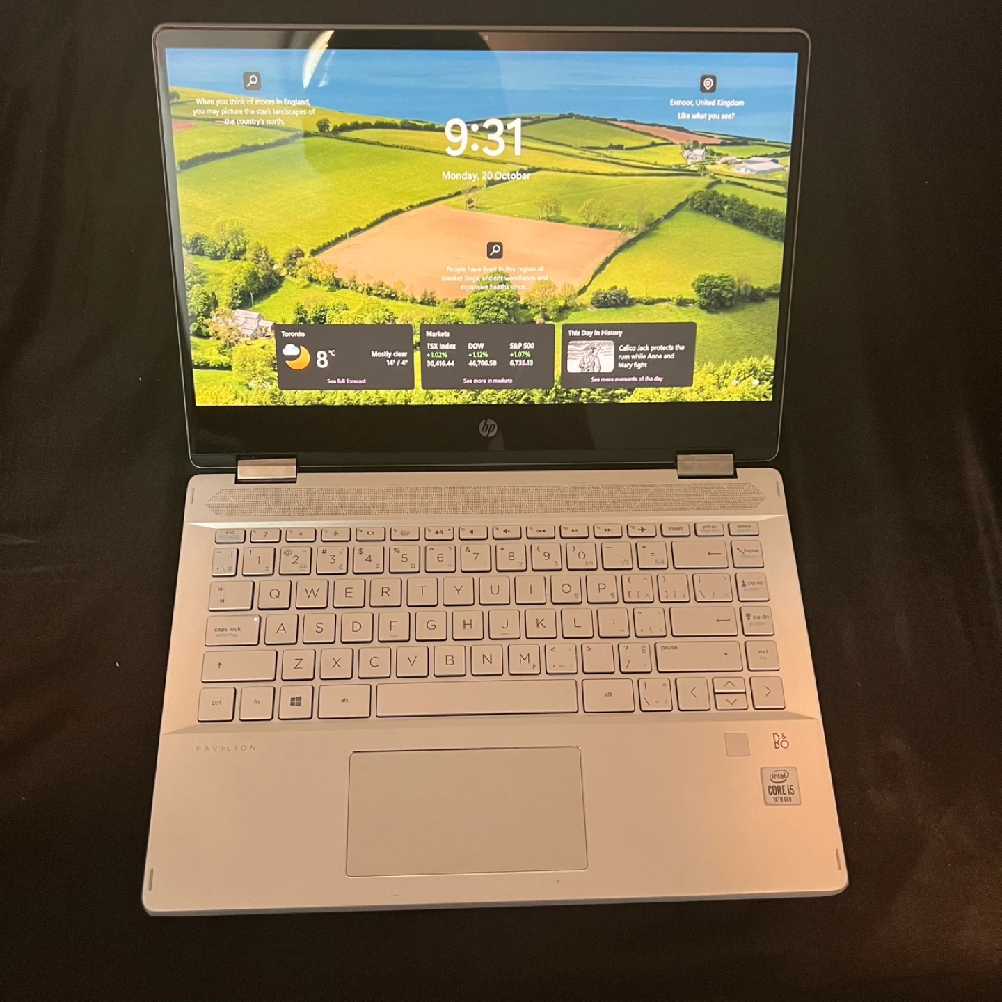 181Selling my HP Pavilion x360 convertible laptop. It's in good working condition and ready for a new home! There are some minor scratches on the exterior, as shown in the photos, but the screen is in great shape. Perfect for school, work, or everyday use. Charger is included as well. - 14" Convertible, touch laptop - 8 GB RAM; 512 GB SSD - Backlit keyboard - Bang & Olufsen speakers - Intel Core i5 10th Gen chip - Ports - 2xUSB A, USB C, SD Card, HDMI and headphone jack - ALL MANUFACTURER PARTS - no refurbishments done *NO TRADE; NO SHIPPING; ONLY CASH will be accepted*