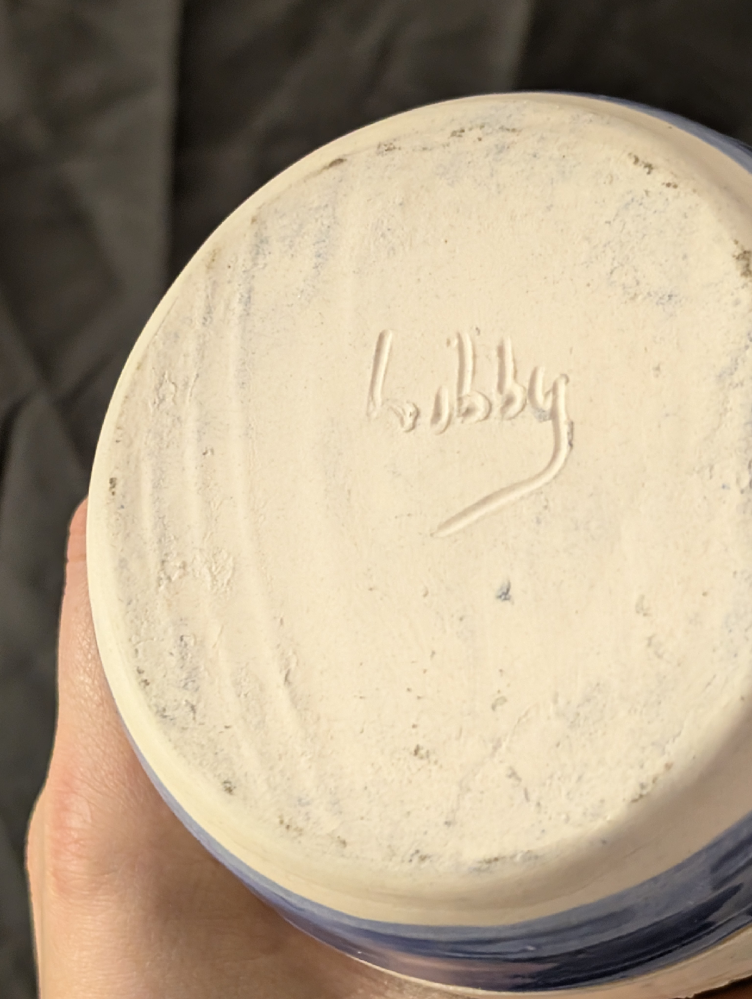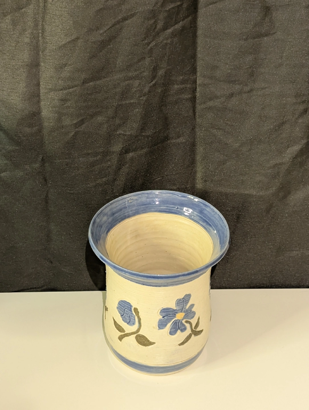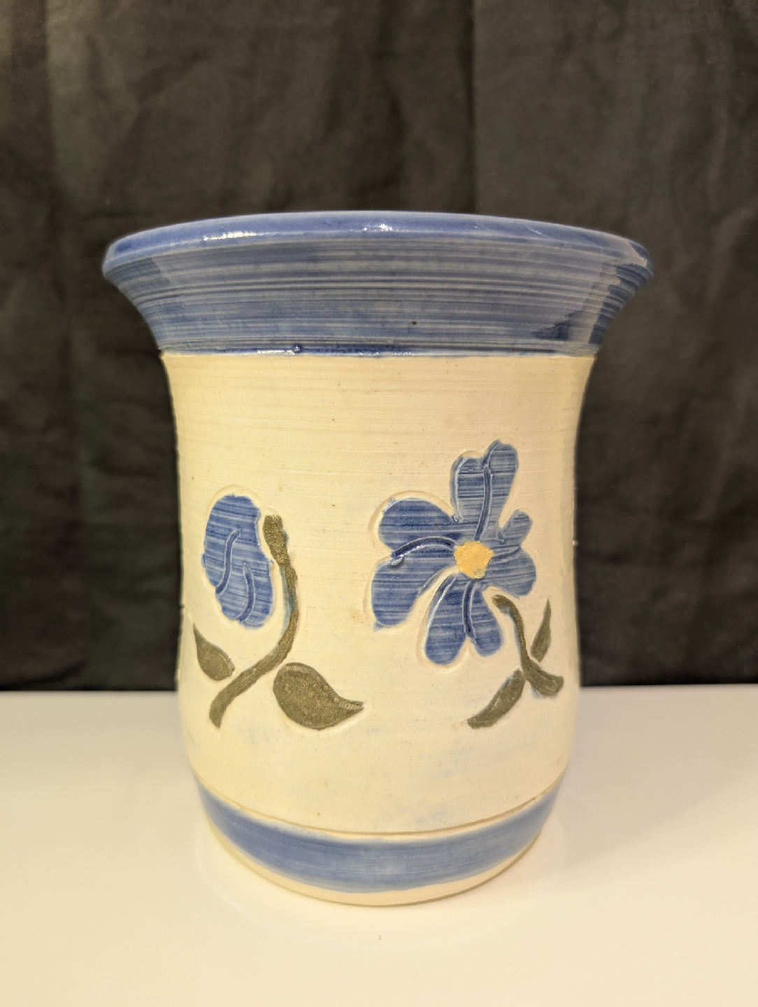 Selling a lovely pottery vase by Libby! It features a charming blue floral design on a cream-coloured base. Perfect for adding a touch of handmade artistry to your home