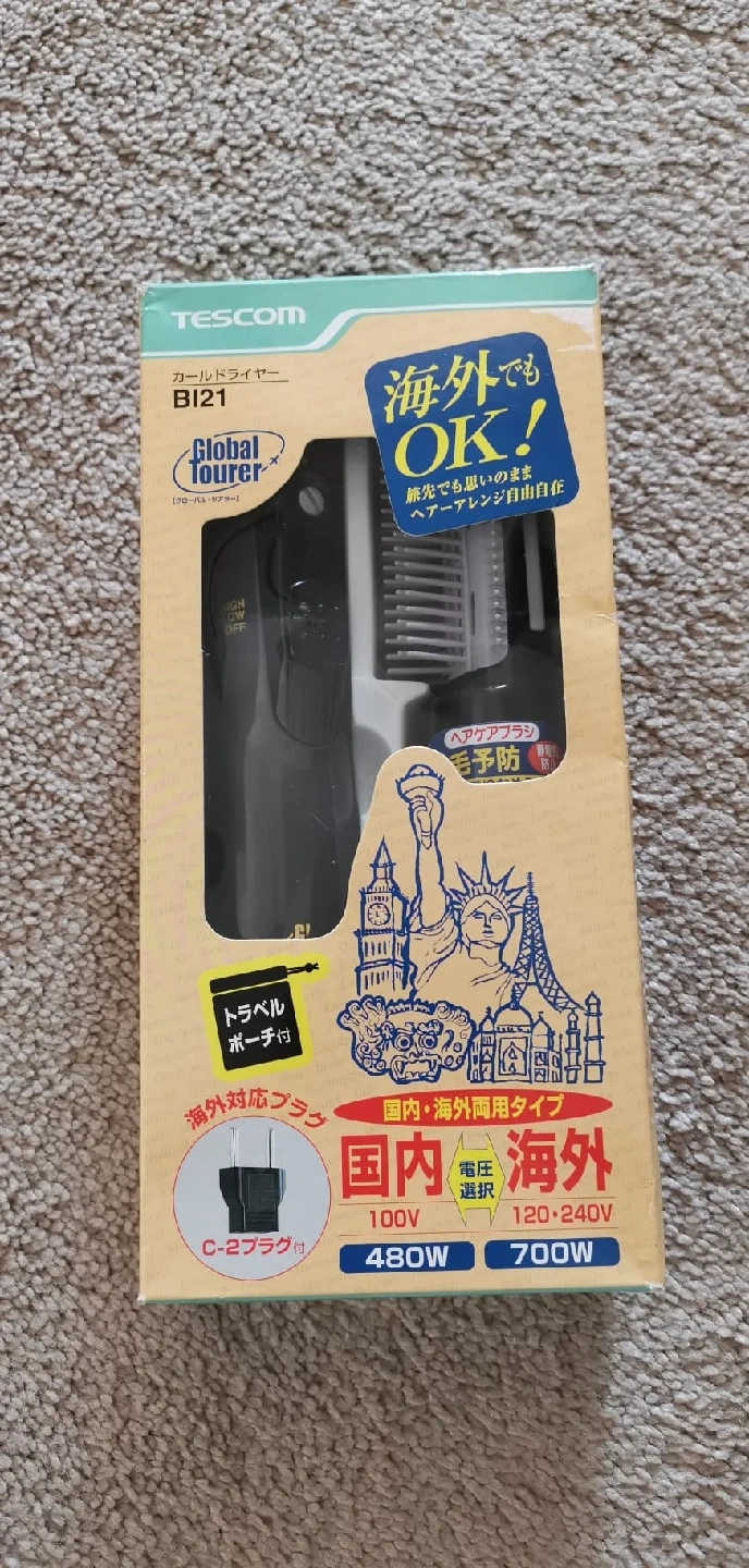 Selling a Tescom BI21 Global Tourer hair curler dryer in black! It's in great condition and comes with all the original accessories and box. This is perfect for travel with its voltage selector and included travel pouch. It also comes with a C-2 plug adapter.