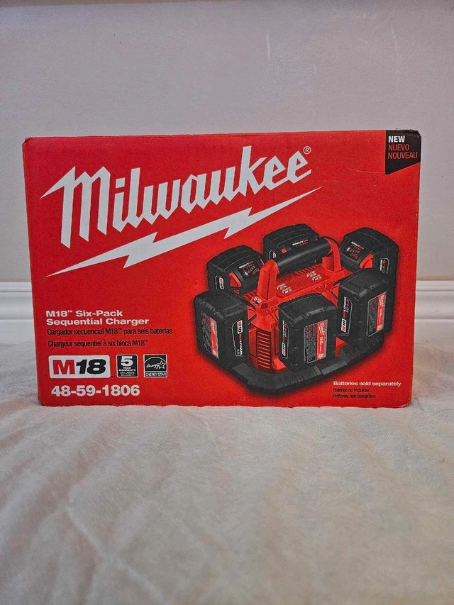 Brand new Milwaukee M18 Six-Pack Sequential Charger, model 48-59-1806, designed for M18 batteries. * Sequential charging to minimize downtime. * Optimized for M18 battery packs. * Compact design for easy storage. If the ad is up, the charger is available.