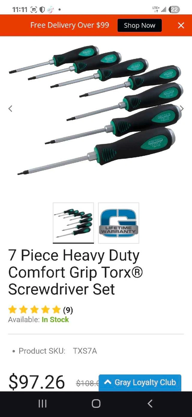 Brand new Gray Tools 7-piece heavy-duty comfort grip Torx screwdriver set. 2 sets available! $70 each