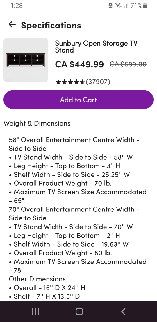 Sunbury Open Storage TV Stand for TVs upto 70" (Expresso)