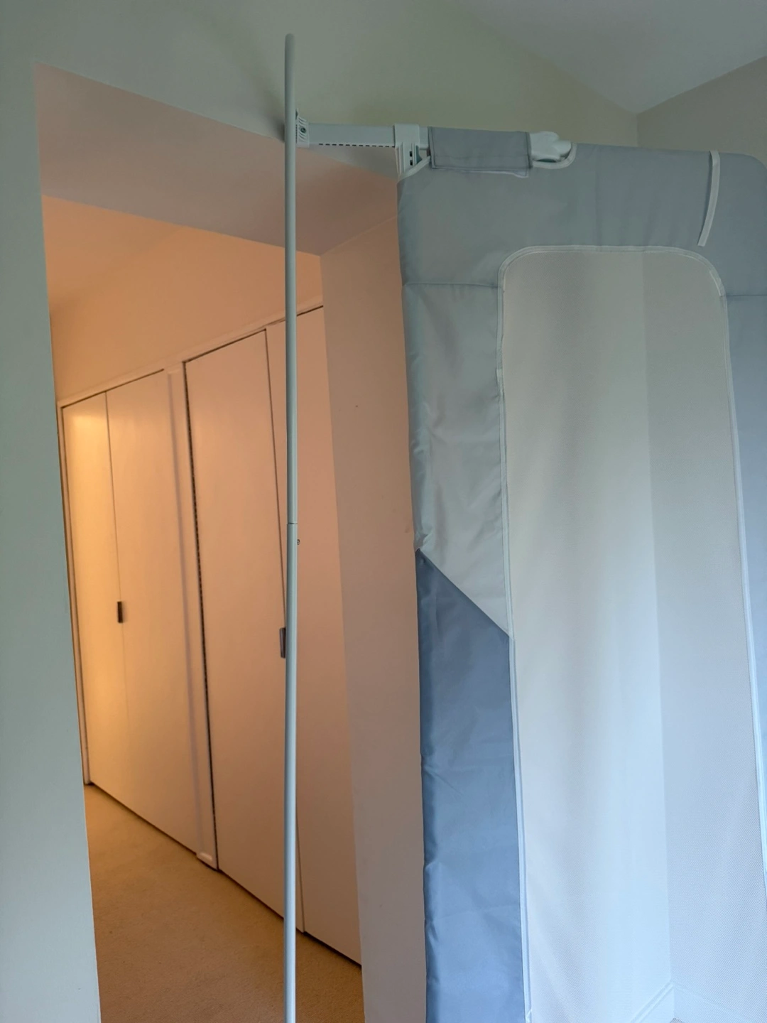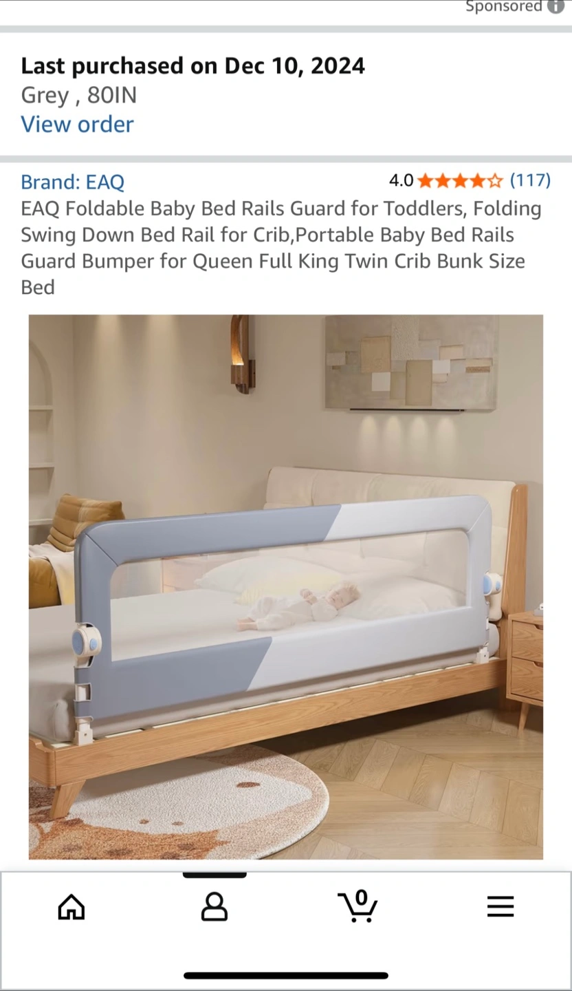 Selling an EAQ foldable baby bed rail in grey. It's 80 inches in size and designed to guard toddlers. It's a folding swing-down bed rail suitable for cribs and portable baby bed rails. Can be used as a guard bumper for Queen, Full, King, Twin, Crib, and Bunk size beds. It features 14 gears for height adjustment and is easy to install. Bought in December 2024.