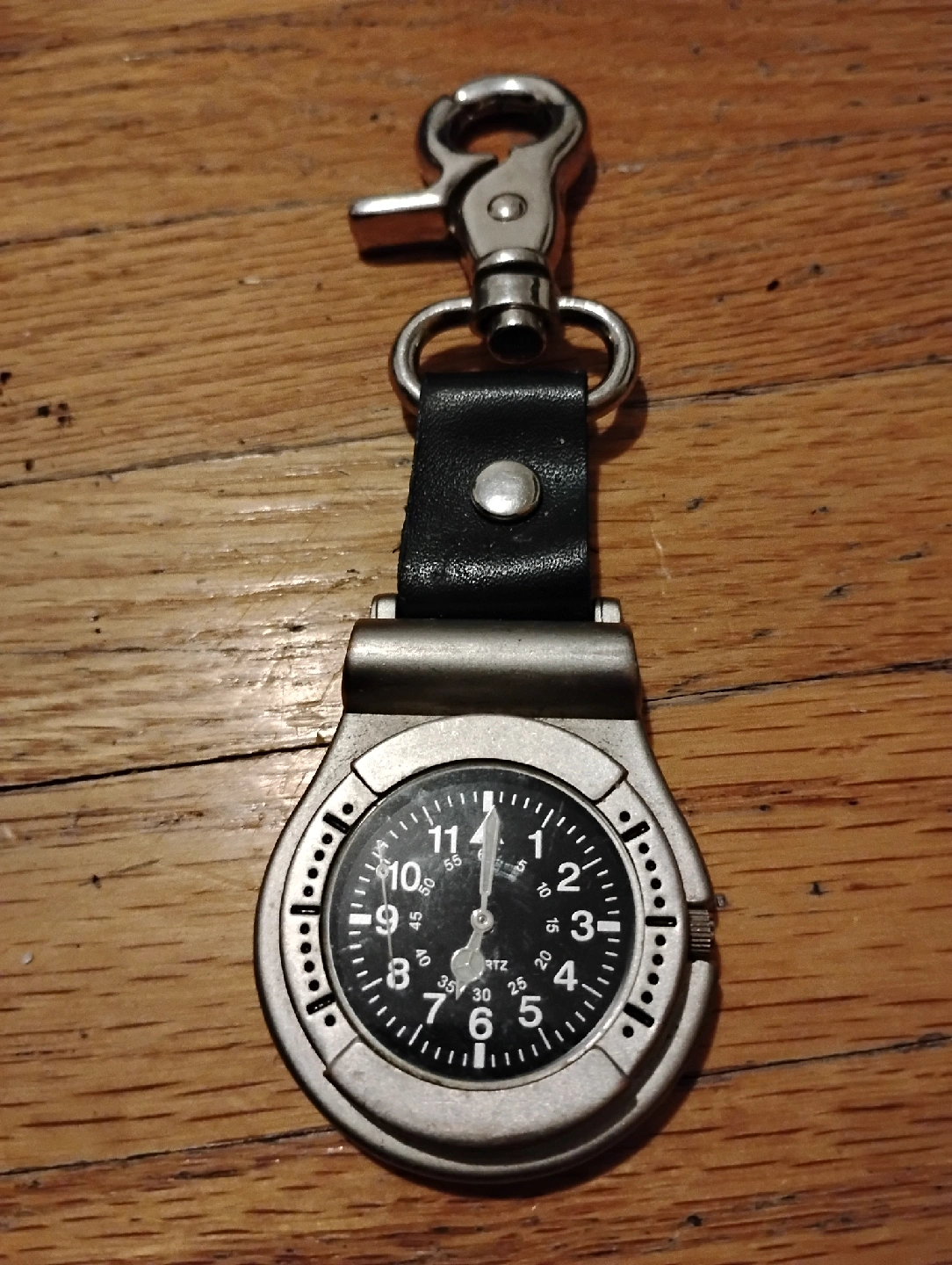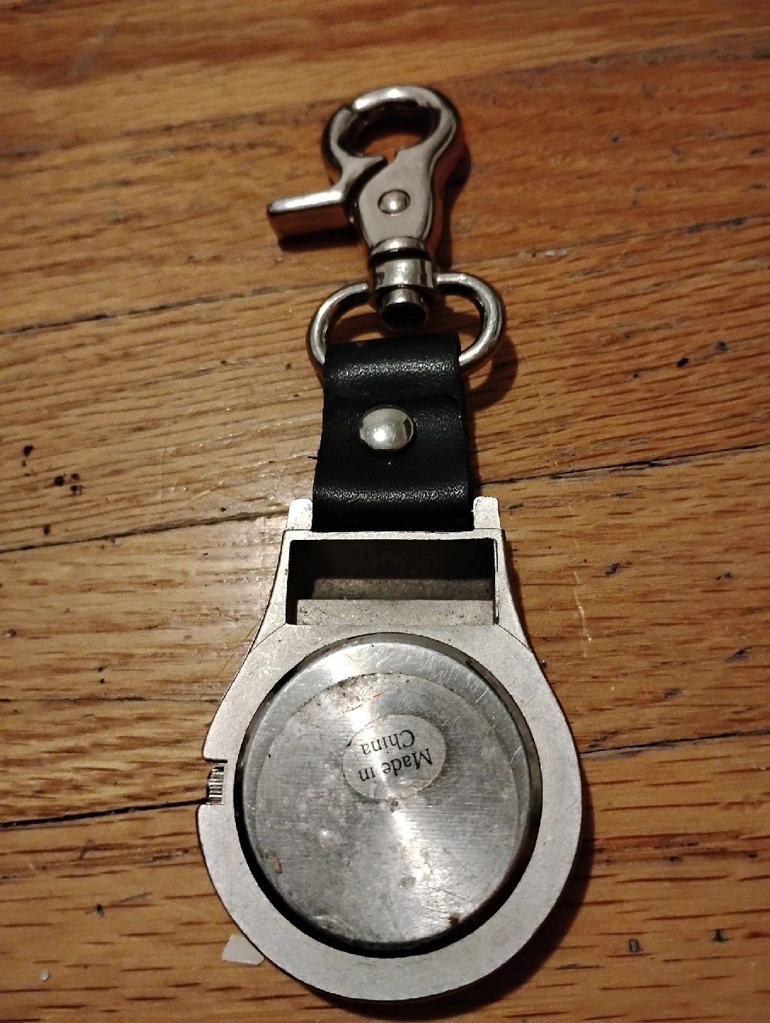 65Here's a cool pocket watch with a keychain clip! It's a unique piece and in good condition.