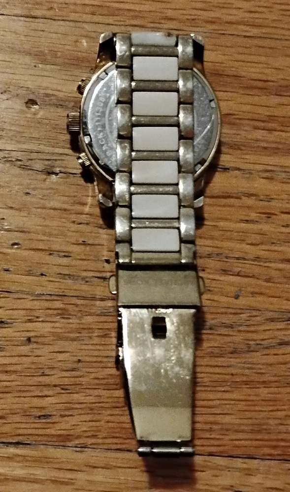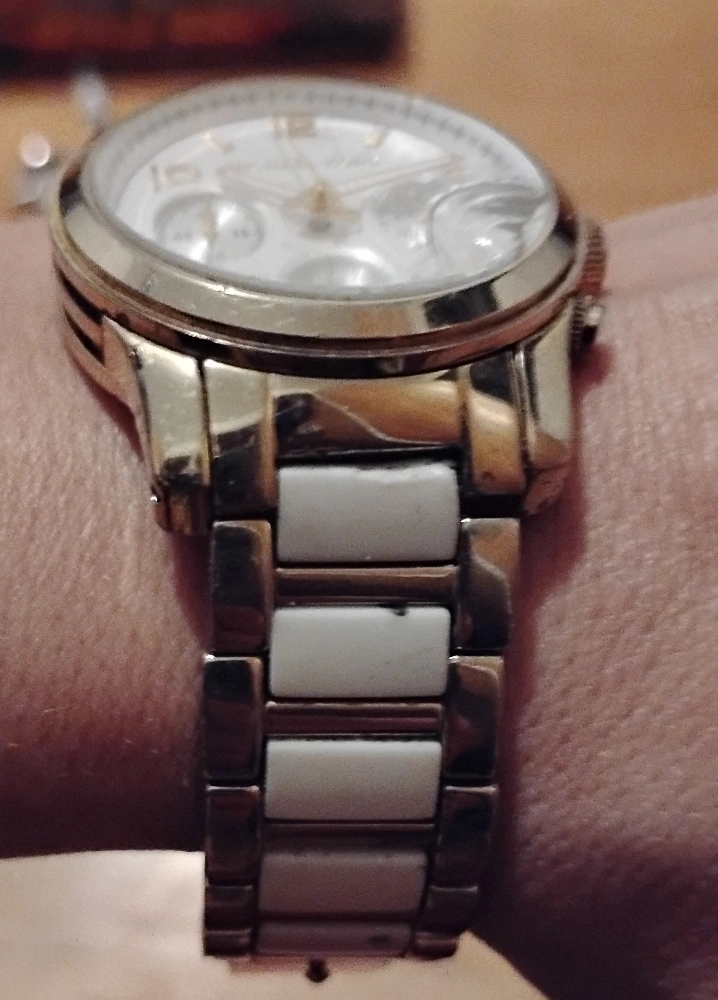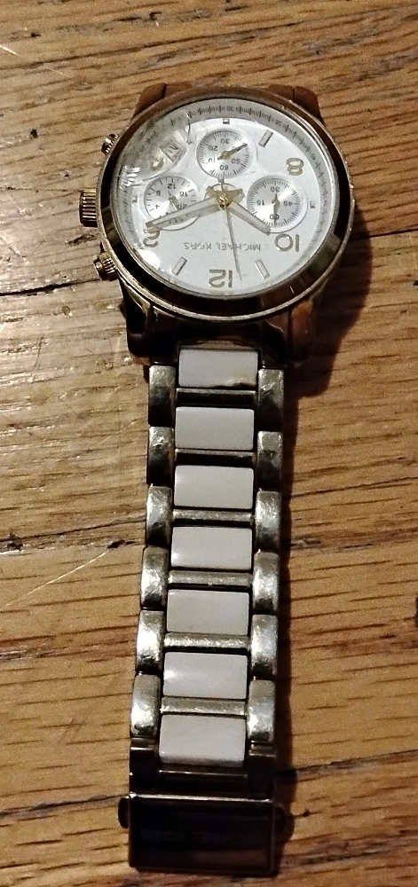 65Selling a Michael Kors ladies watch. It is gold with a white face and white band accents. It is in good condition.